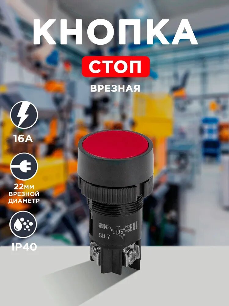 Кнопка Стоп врезная управления d22мм 230В красная интересное: