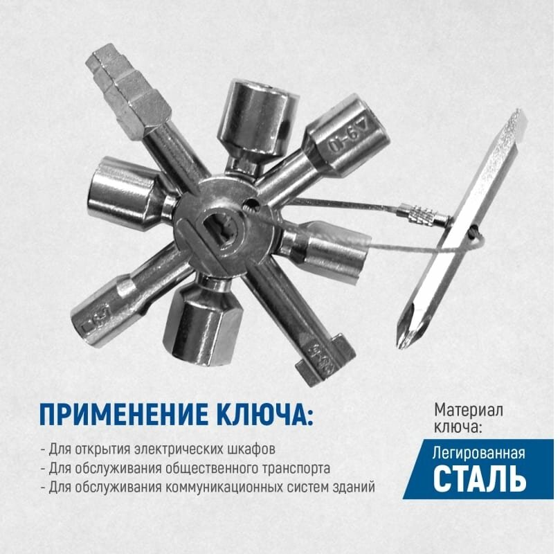 Ключ для электрошкафов многофункциональный с 10 рабочими профилями и битой OPTIMUS OPT-ECK01 интересное: