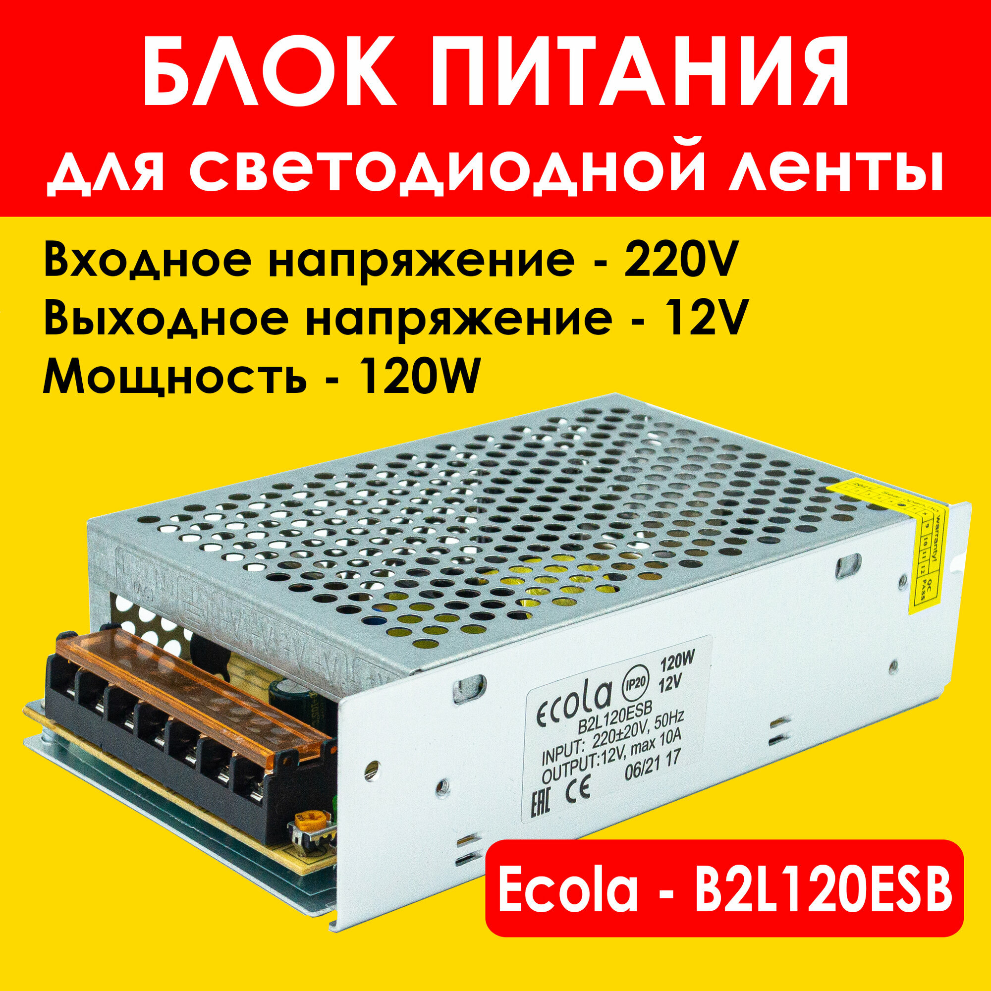Блок питания 120вт / 12в Ecola, для LED-ленты, светодиодной ленты, люстры, лампы, модулей Экола (драйвер 120W /12V) интересное: