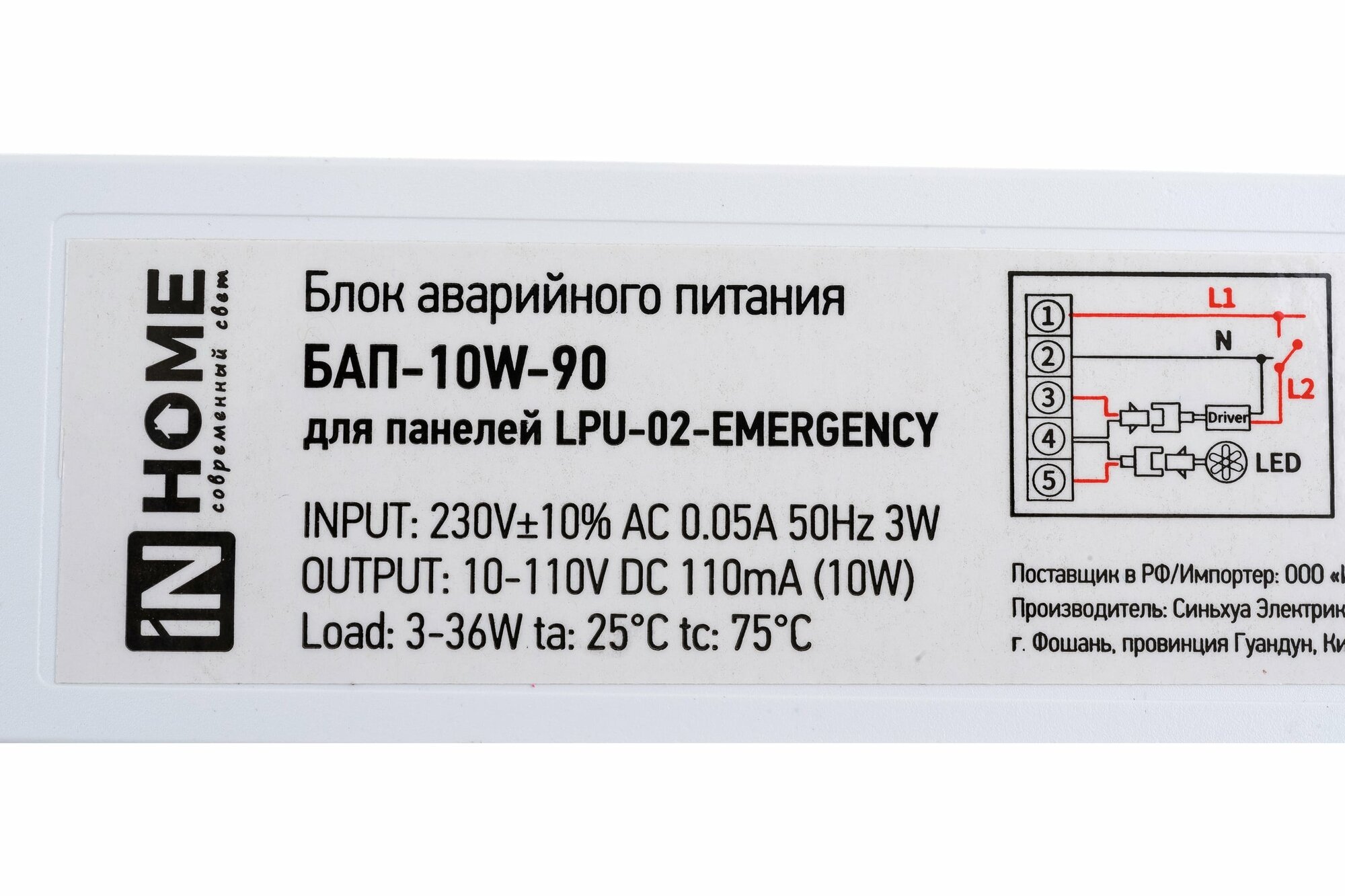 Блок аварийного питания LPU-02-EMERGENCY 10Вт 90мин для панелей сд IP40 4690612029986 IN HOME интересное: