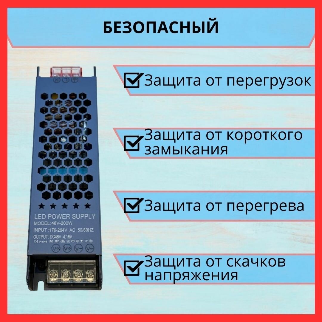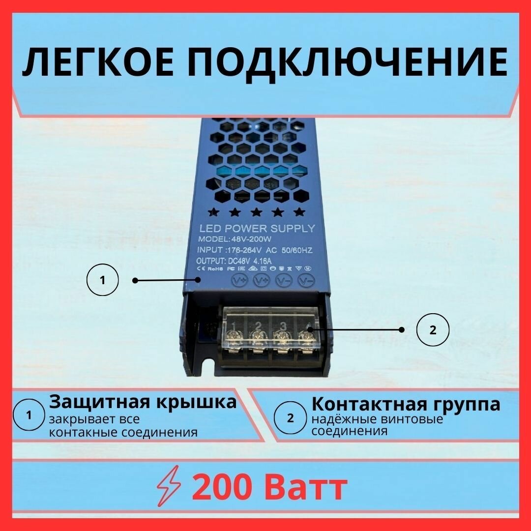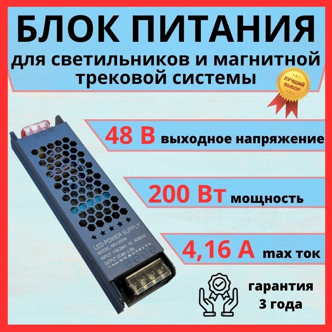 Купить Блок питания для Светильников, магнитных треков 48 Вольт, 200 ватт