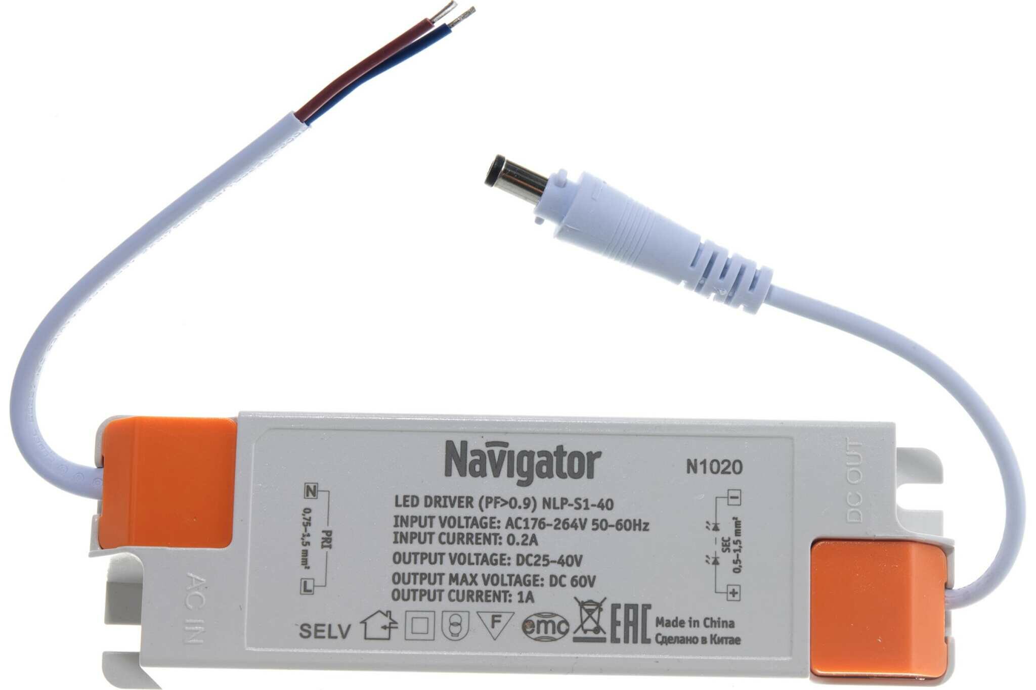 Драйвер для светодиодных светильников Navigator 40 В NLP-S1-40 IP40 61547 ND-P40-1000mA-IP40