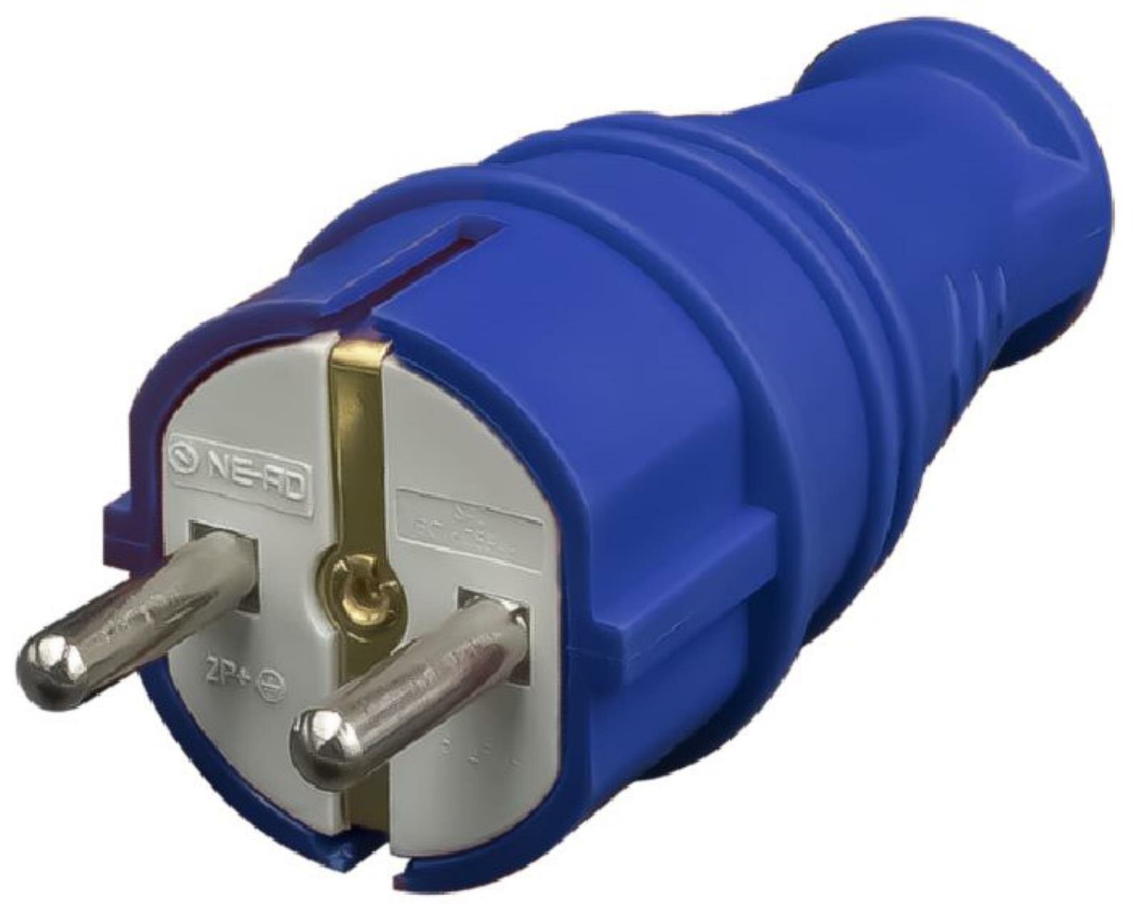 Вилка штепсельная NE-AD прямая, с заземлением, синяя, каучук интересное: