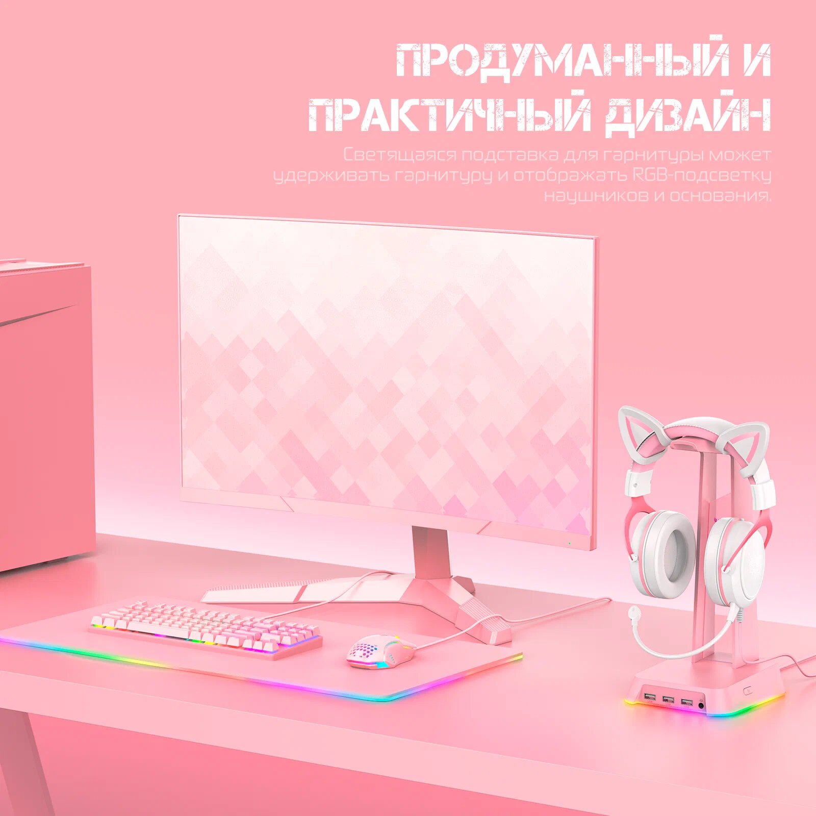 Подставка для наушников розовая ONIKUMA ST-02 Oni Pink c RGB подсветкой интересное: