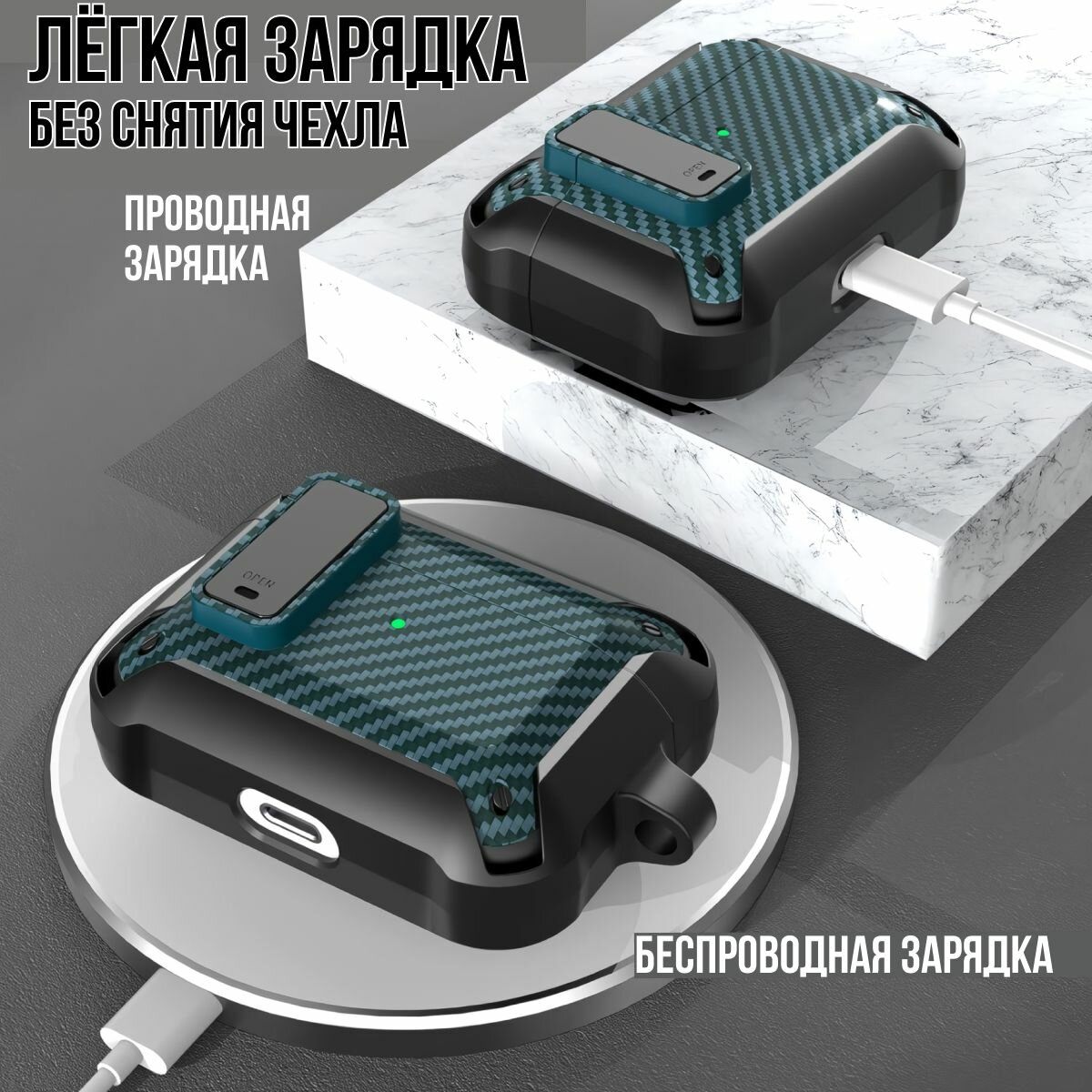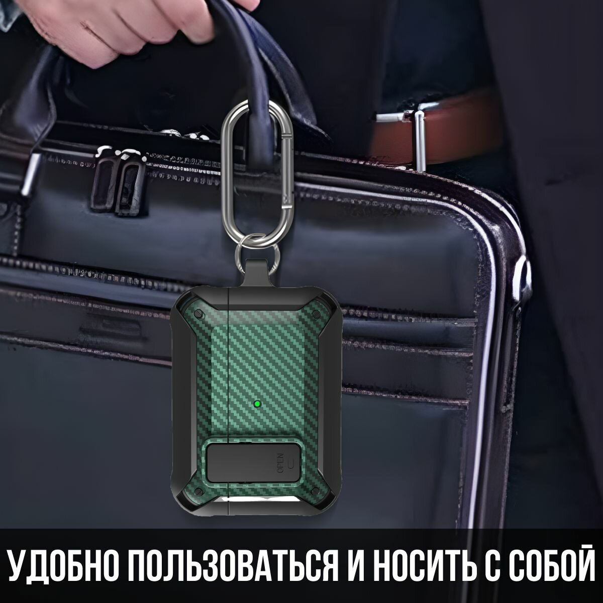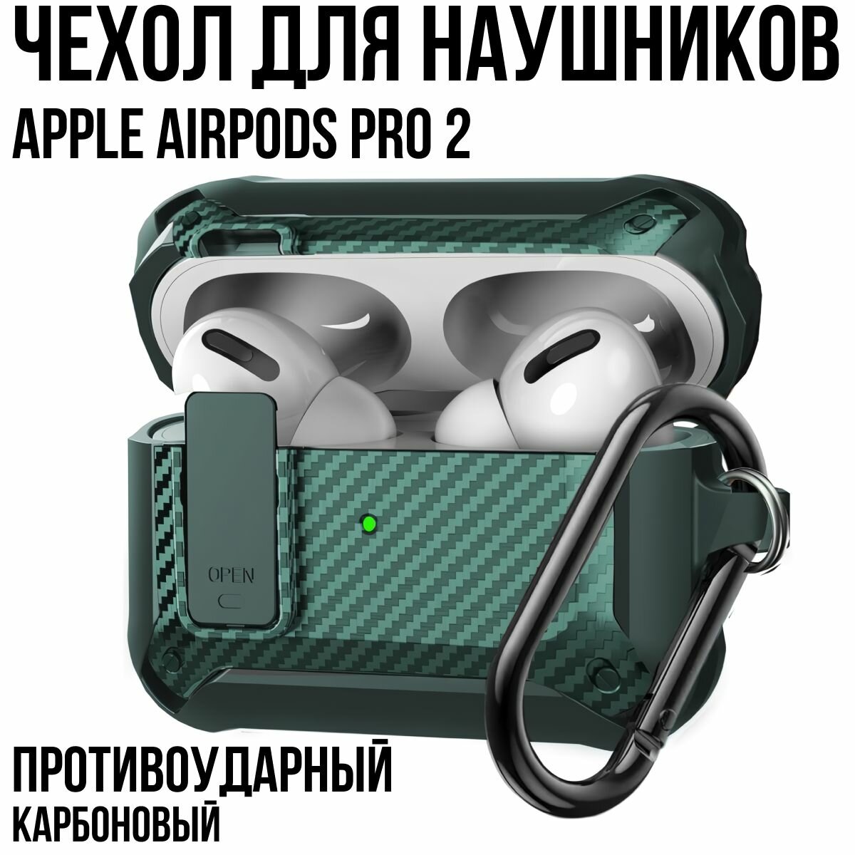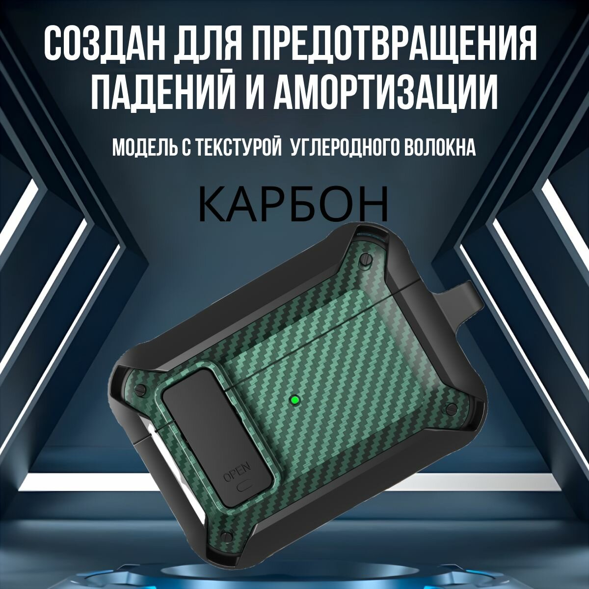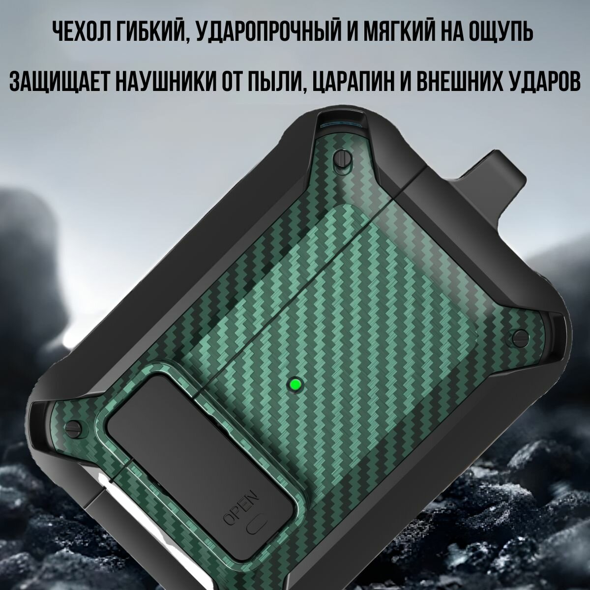 Чехол для наушников Airpods Pro и Airpods Pro 2 противоударный зелёный / Чехол для наушников аирподс про и аирподс про 2 усиленный карбон интересное: