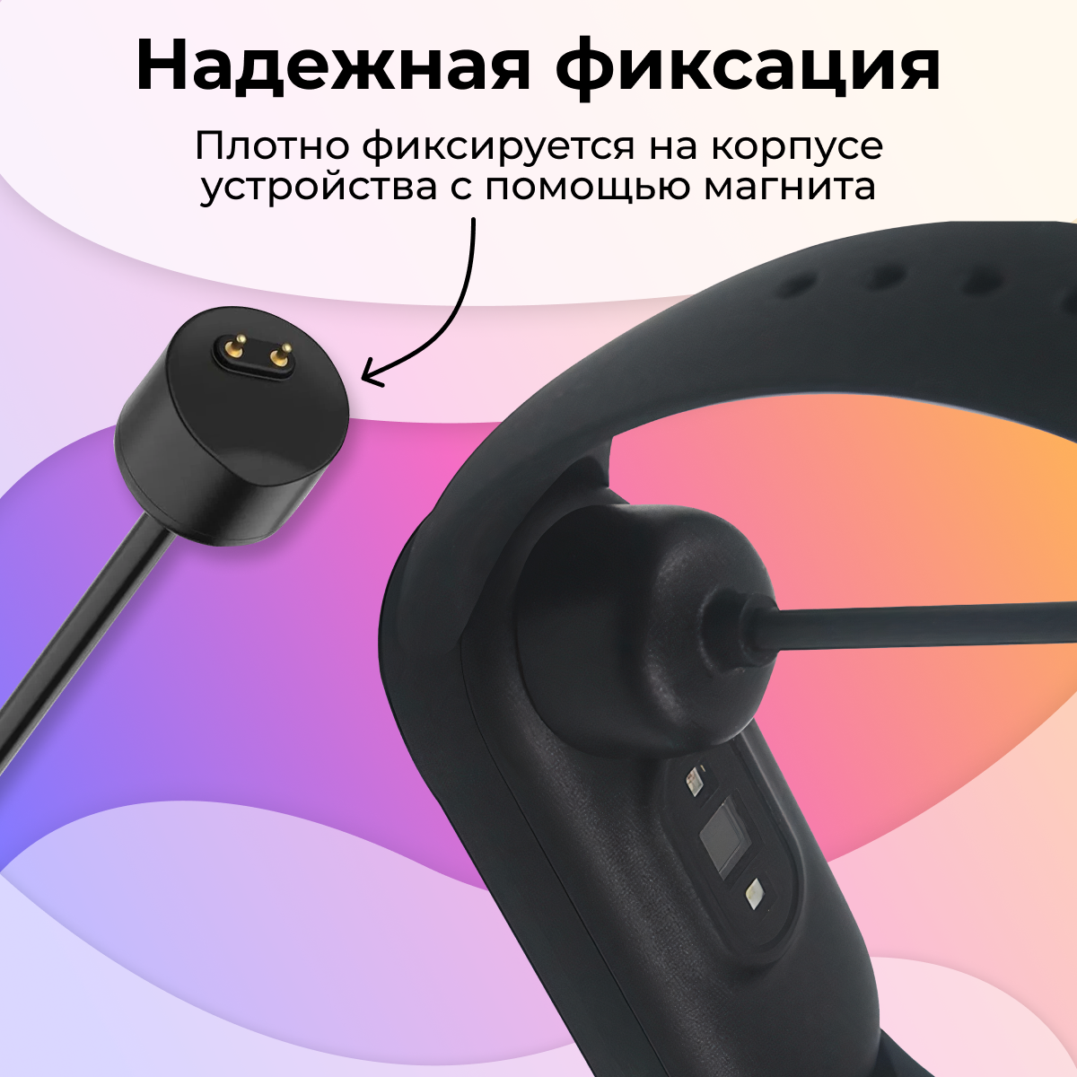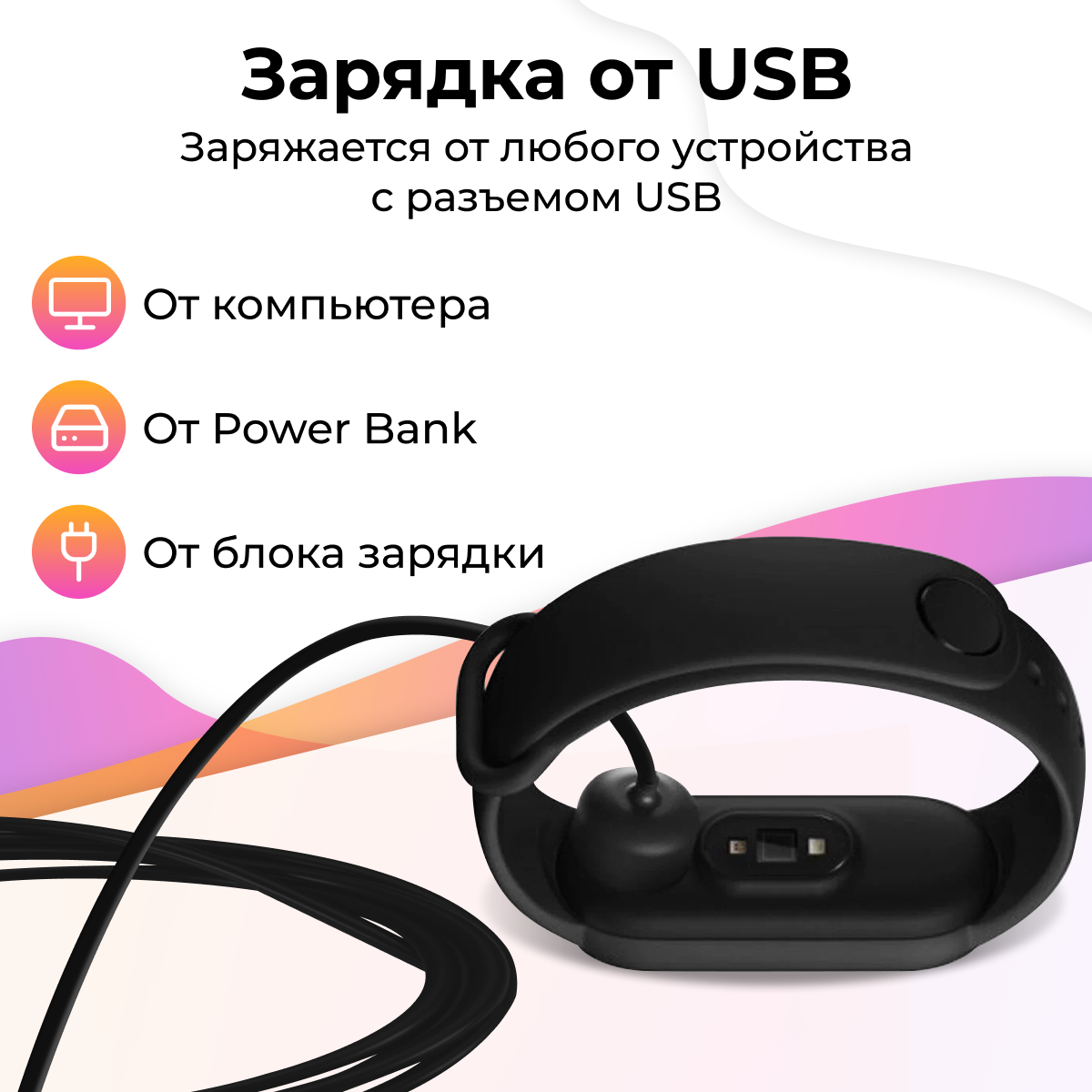 USB зарядка для фитнес-трекера Xiaomi Mi Band 5, 6, 7 / Зарядное устройство ЮСБ на смарт часы / Черный интересное: