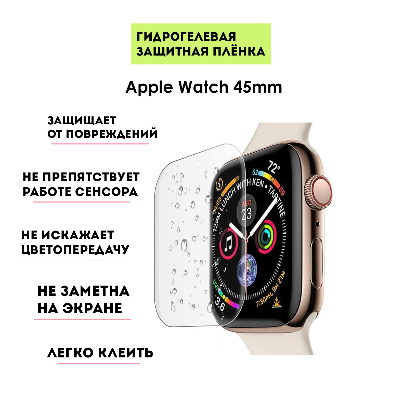 Гидрогелевая защитная плёнка (комплект 3шт) для Apple Watch 45mm Series 7/8, глянцевая, прозрачная интересное: