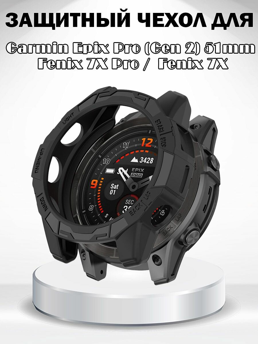 Защитный TPU чехол для Garmin Fenix 7X Pro / Fenix 7X / Epix Pro 51мм - черный интересное: