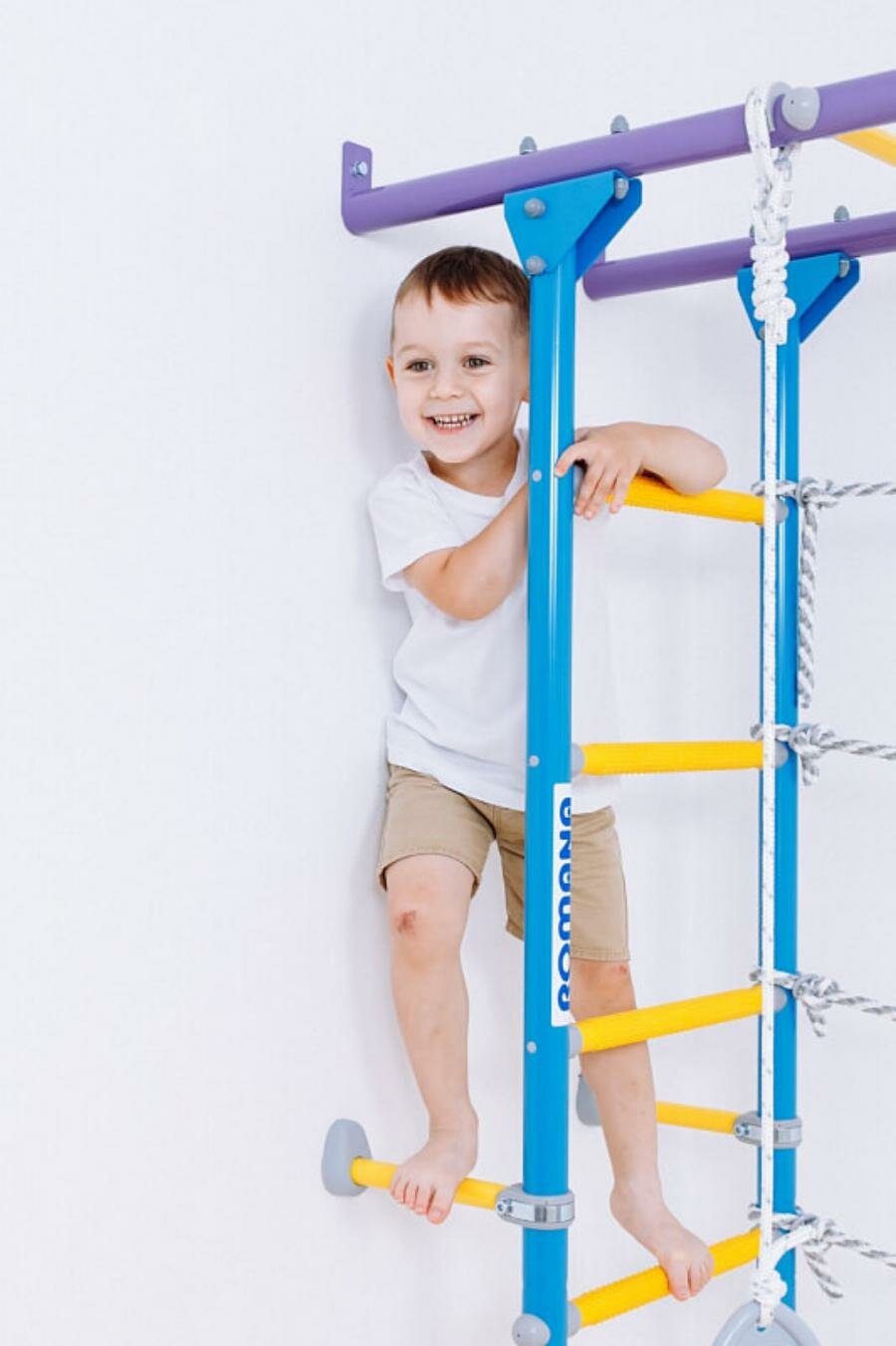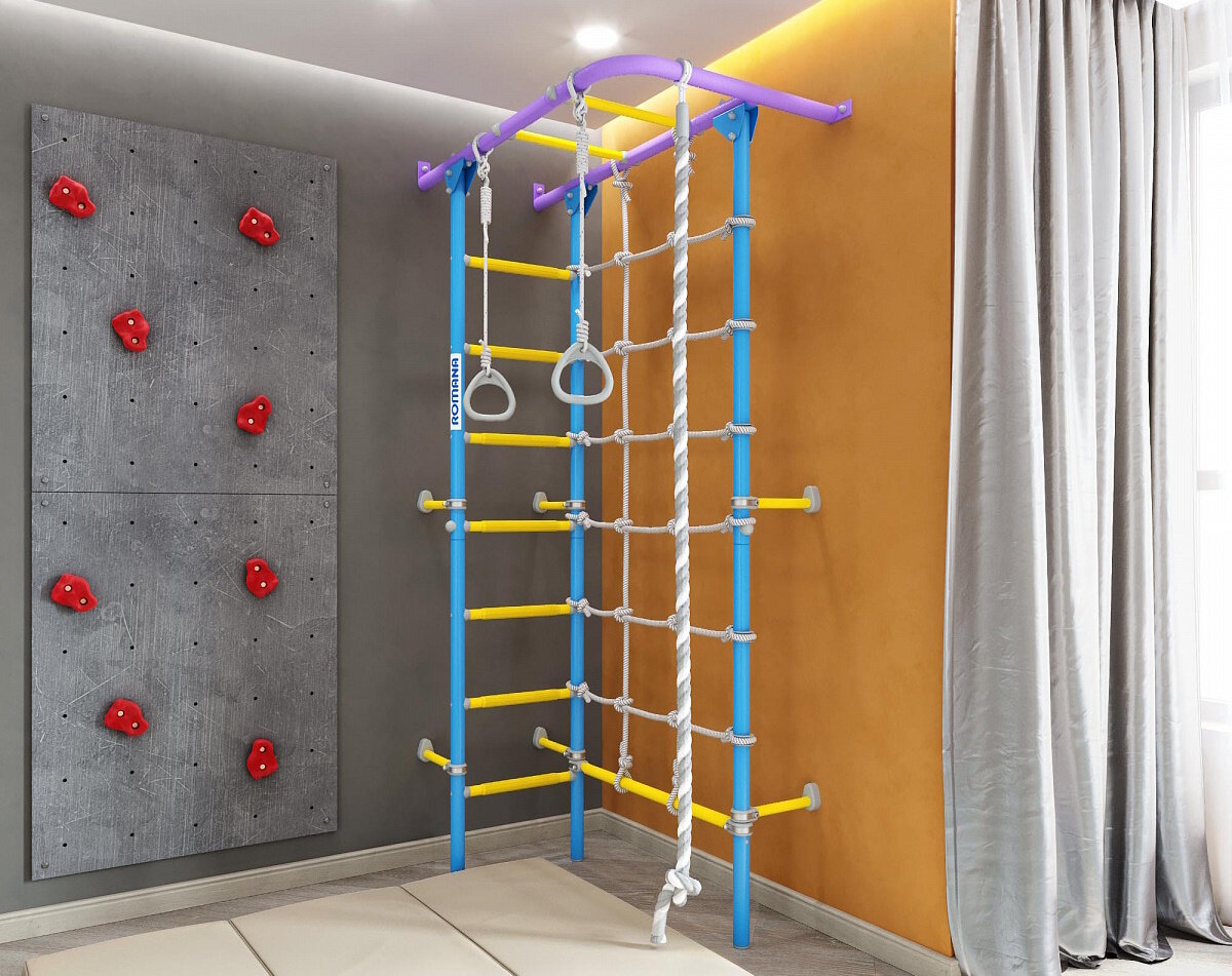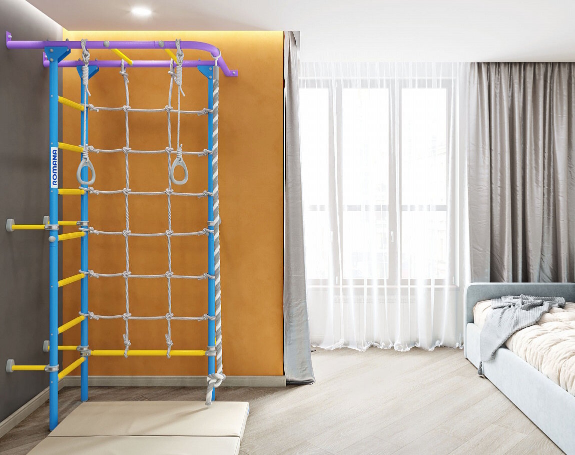Шведская стенка ROMANA S4 с гамаком, цвет сиренево-голубой, гамак синий