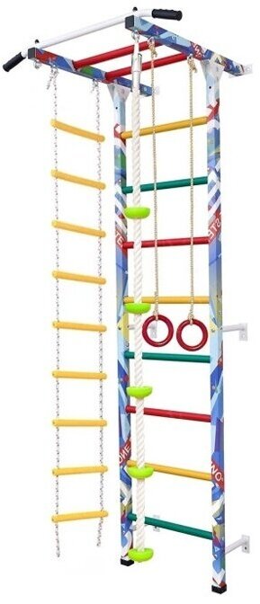 Шведская стенка STICKERBOMB (C турником, веревочной лестницей, кольцами, канатом с упорами, тарзанкой)