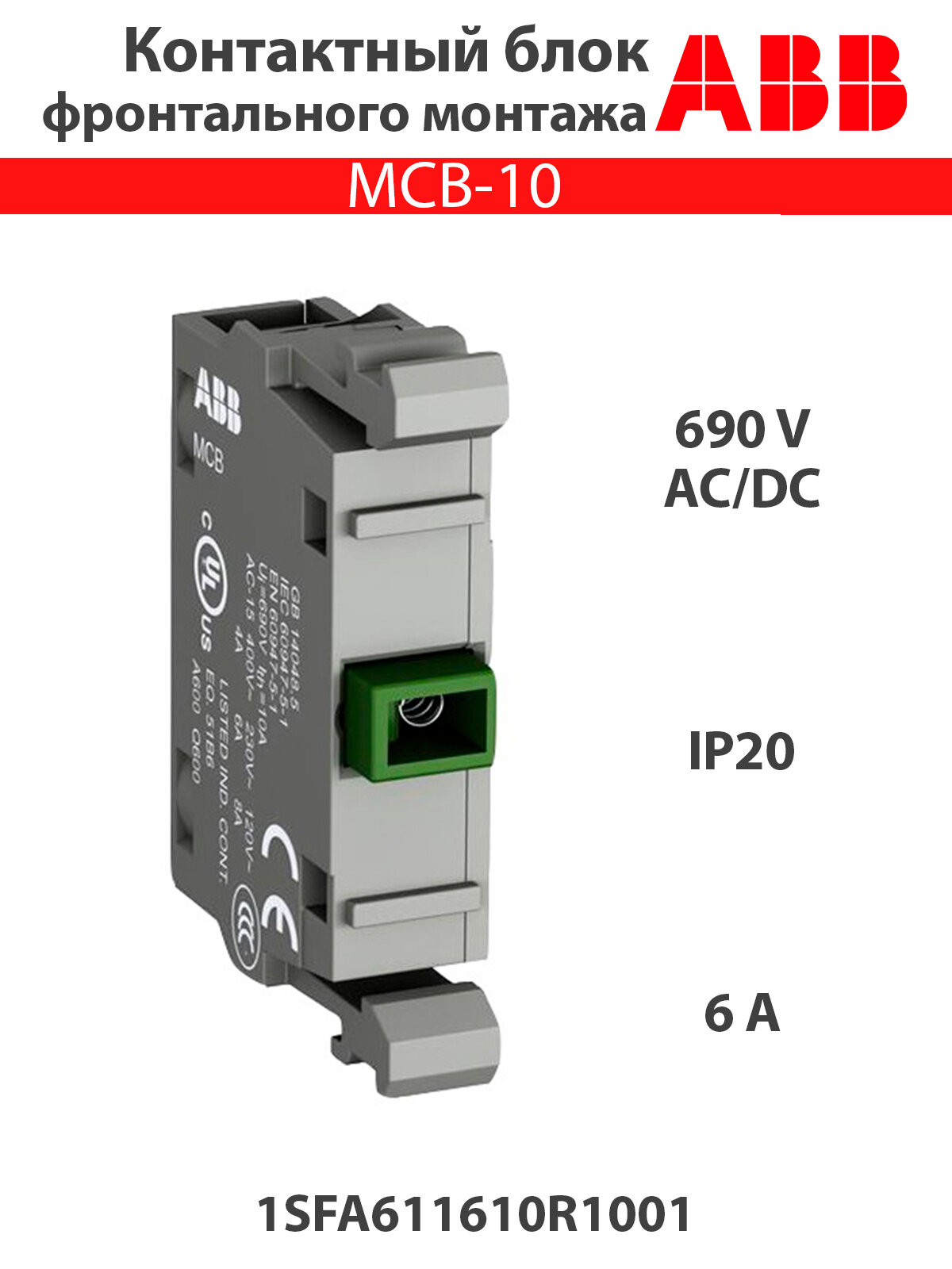 Контактный блок ABB MCB-10 фронтального монтажа 1НО 1SFA611610R1001 Оригинал
