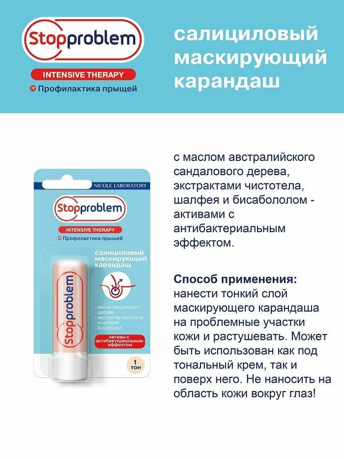 Салициловый маскирующий карандаш Stopproblem тон 1
