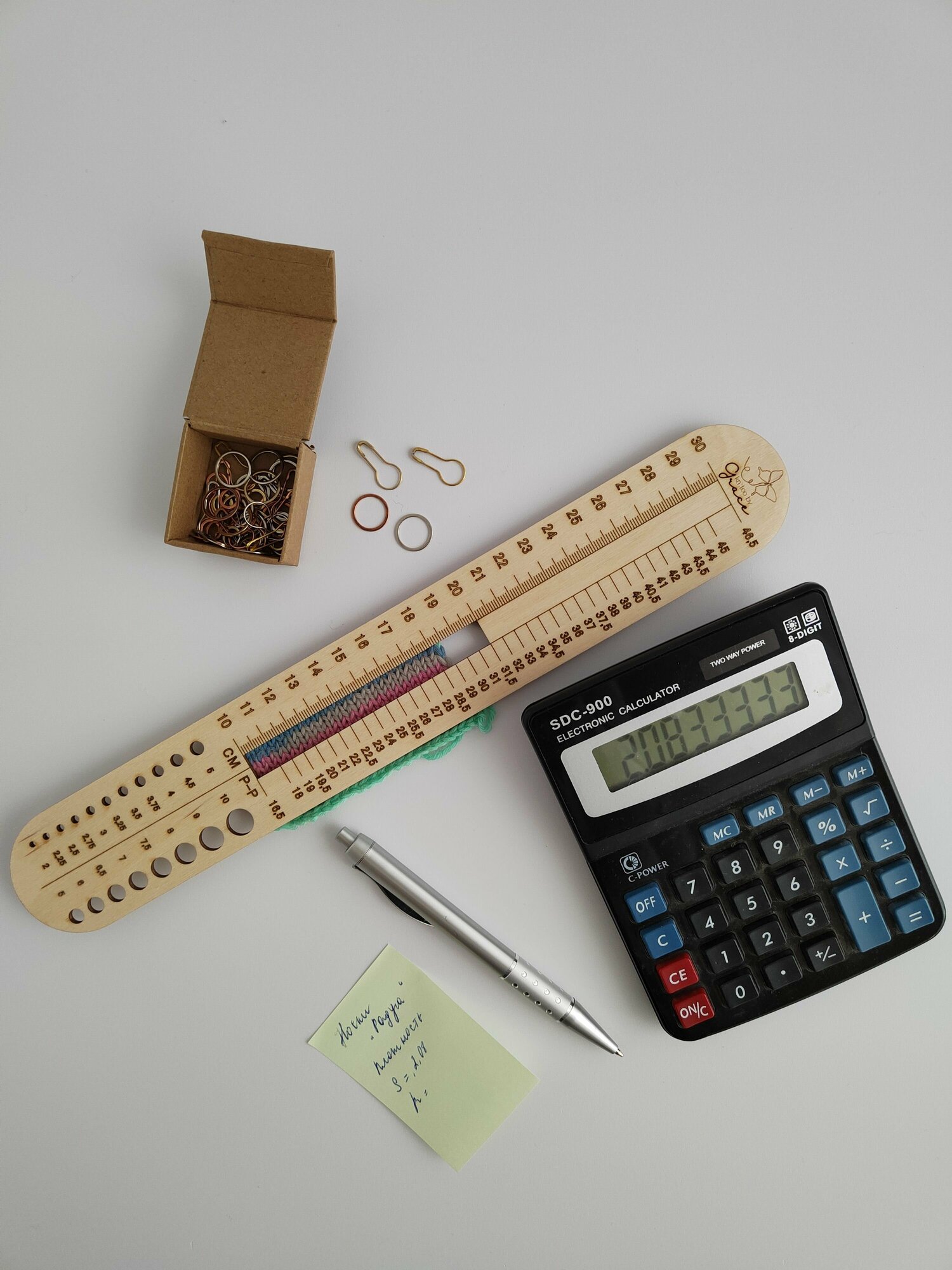 Купить Линейка 4 в 1 для измерения размера стопы, длины носка во время вязания, измерения размера спиц и плотности вязания.