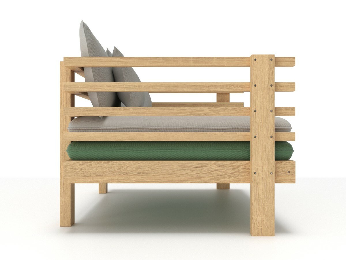 Диван садовый Soft Element Атлантик-С, двухместный, цвет Green Ash, деревянный, с подлокотниками и подушками, на террасу, на веранду, для дачи и сада, дачный, для бани