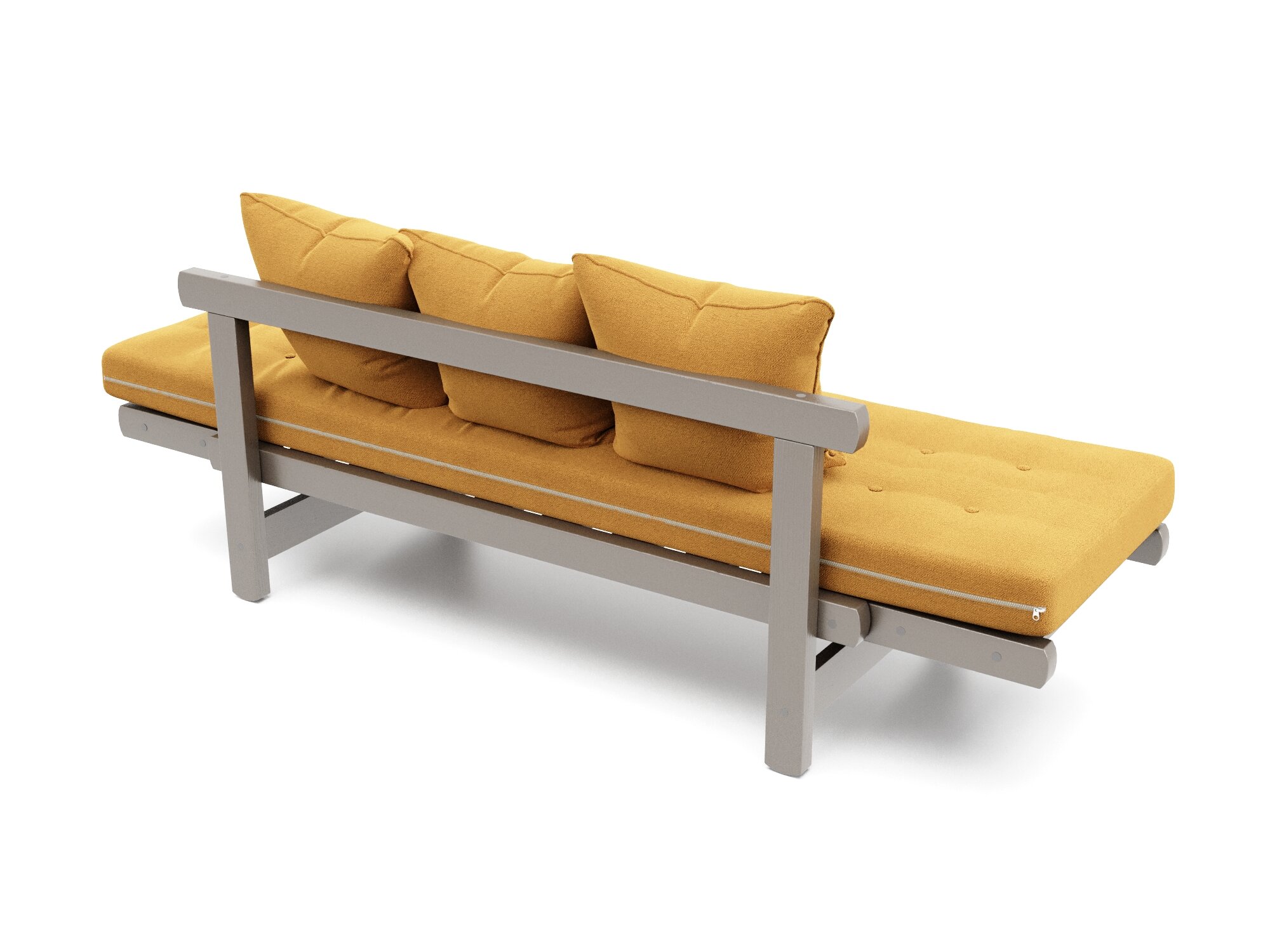 Садовый диван кушетка Soft Element Эльф-С, бежевый-желтый, деревянный, раскладной, рогожка, на террасу, на веранду, для дачи и сада, дачный, для бани