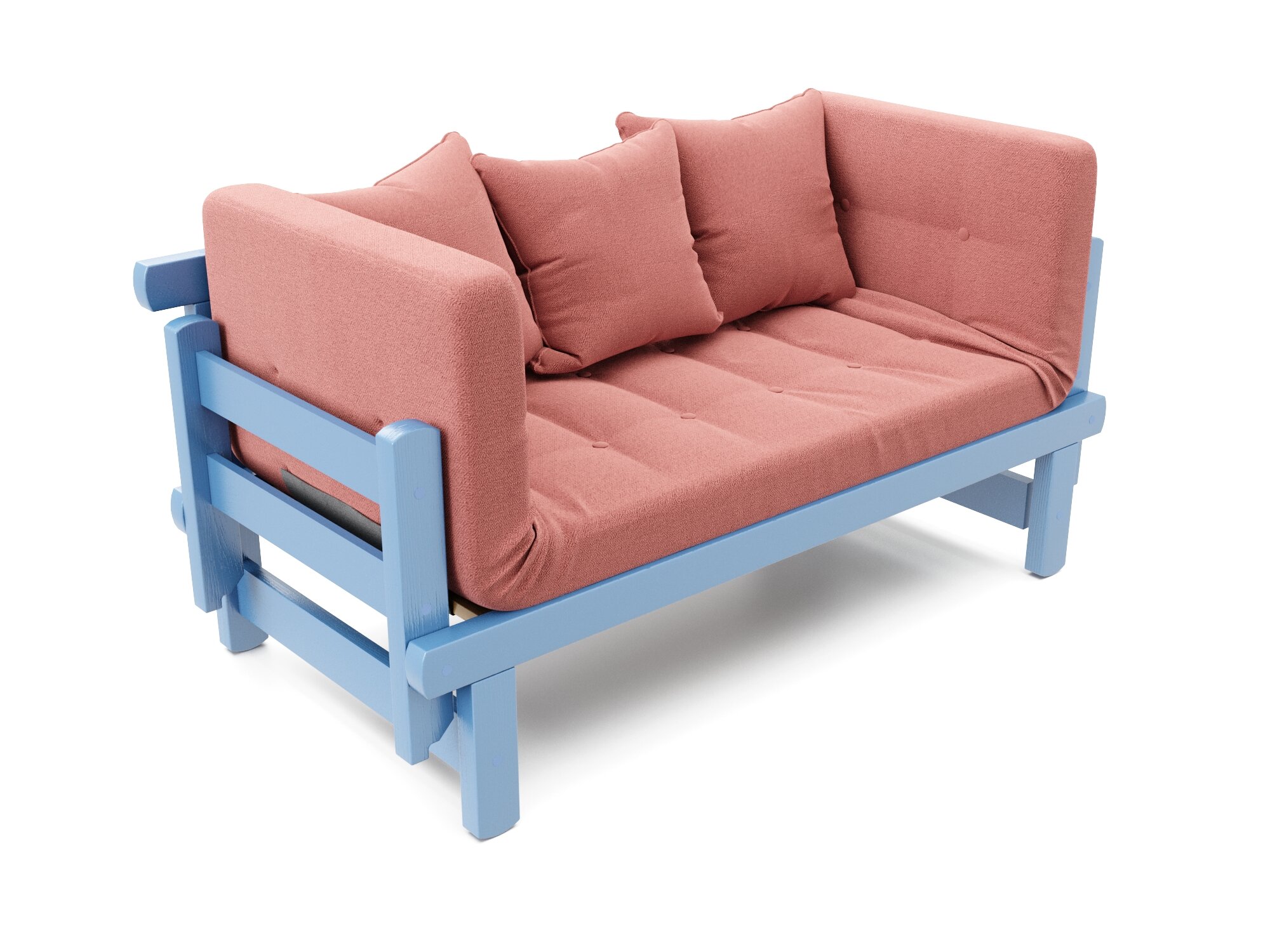 Купить Диван садовый Soft Element Эльф-С, розовый-голубой, массив дерева, раскладные подлокотники, рогожка, на террасу, на веранду, для дачи и сада, для бани