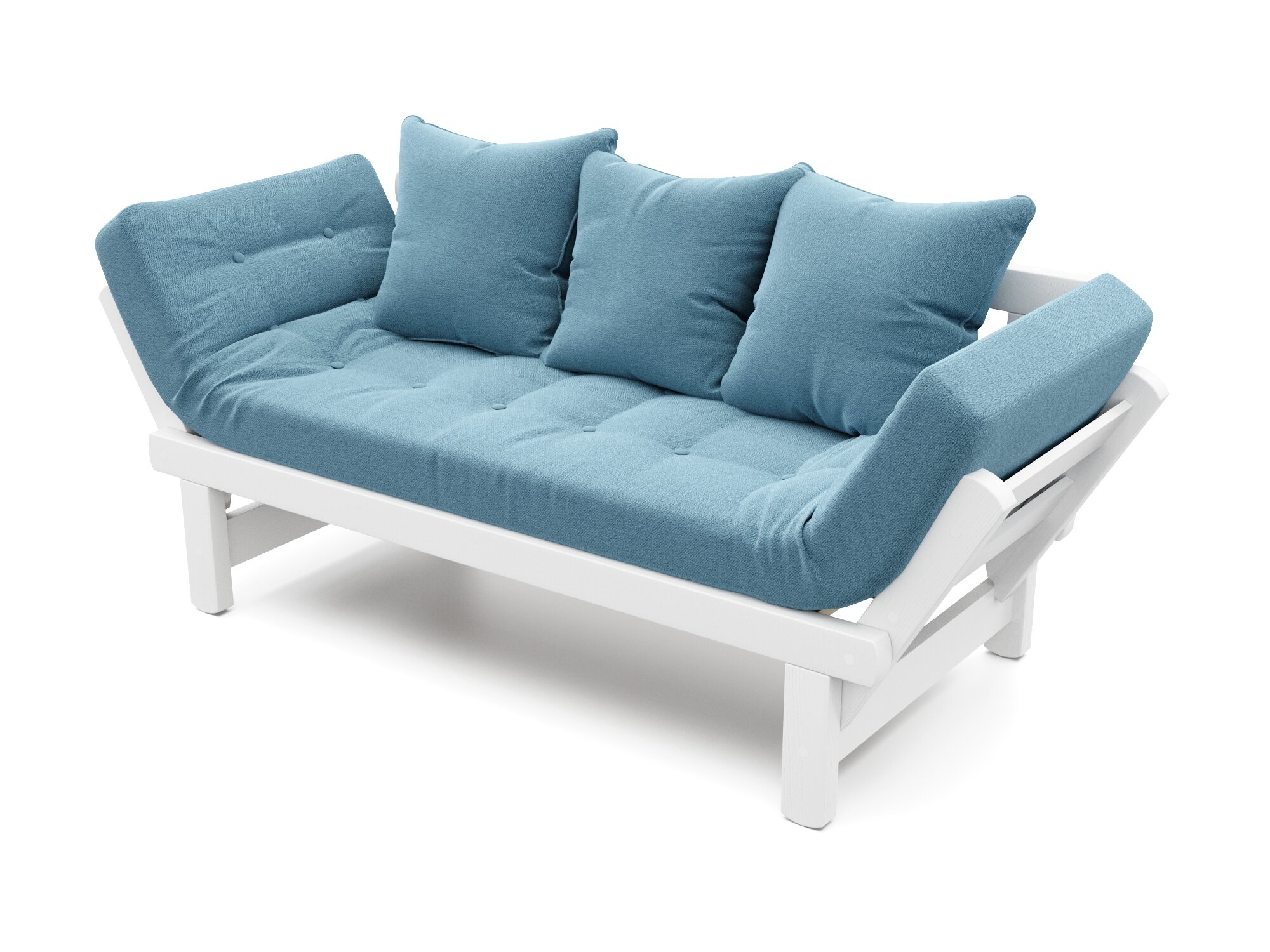 Купить Садовый диван Soft Element Эльф-С, синий-белый, деревянный, раскладные подлокотники, с подушками, рогожка, на террасу, на веранду, для дачи, для бани