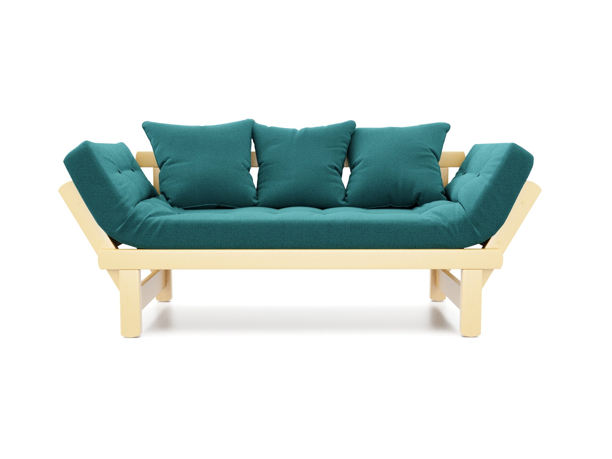 Садовый диван Soft Element Эльф-С, бежевый-голубой, массив дерева, раскладные подлокотники, рогожка, на террасу, на веранду, для дачи, для бани