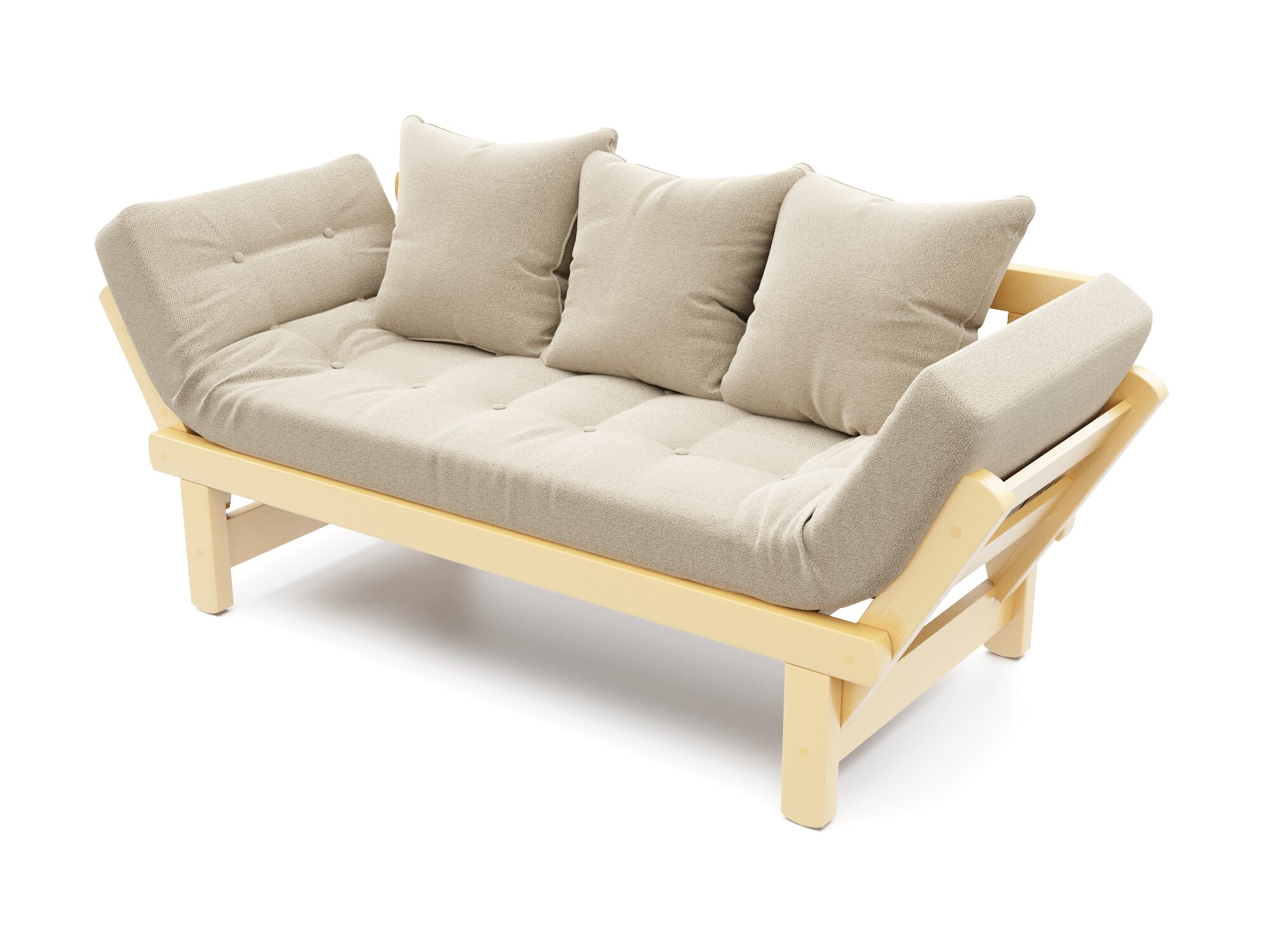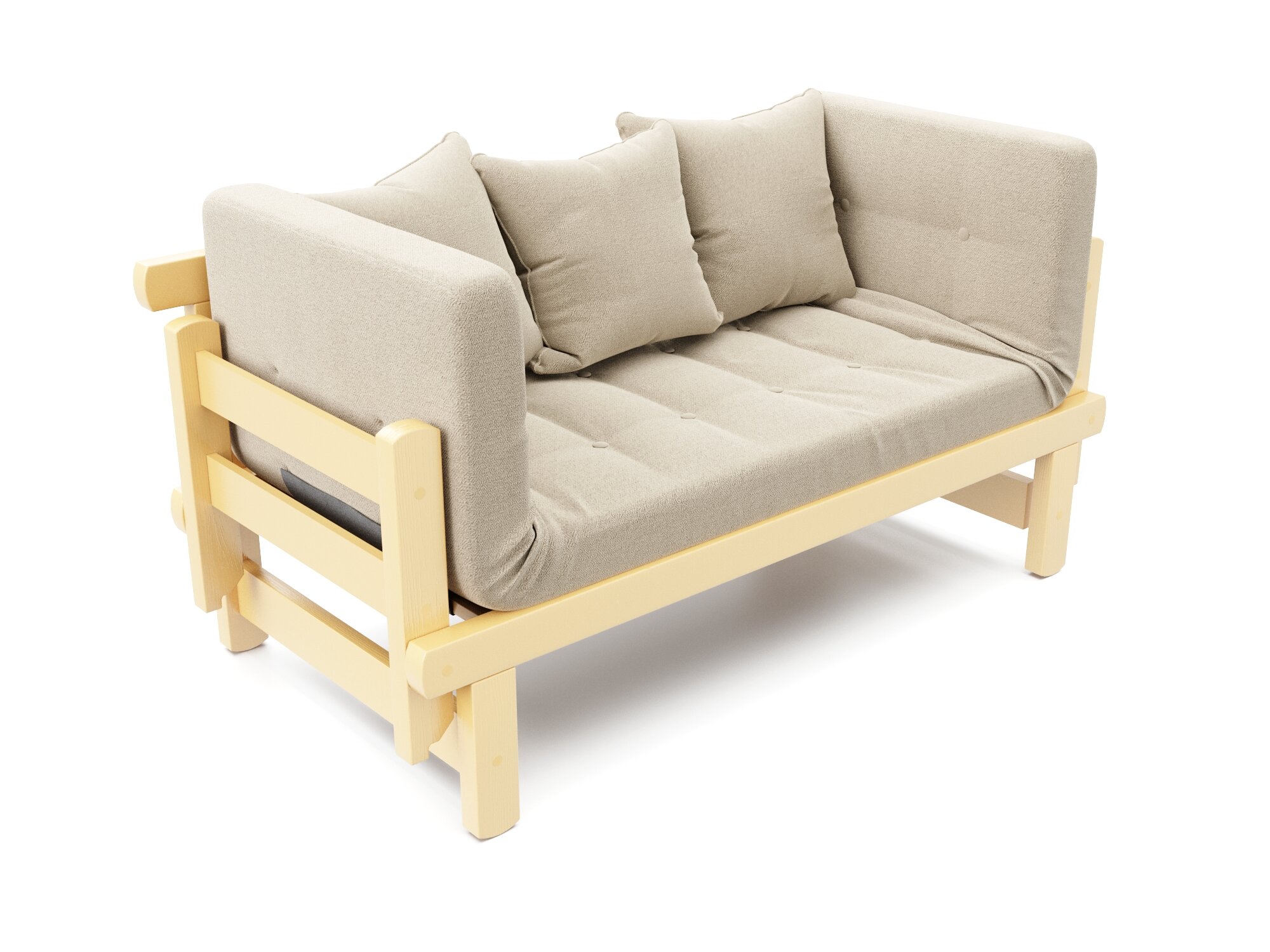 Диван садовый Soft Element Эльф-С, бежевый-белый, деревянный, раскладной, рогожка, на террасу, на веранду, для дачи и сада, для бани в комнату отдыха