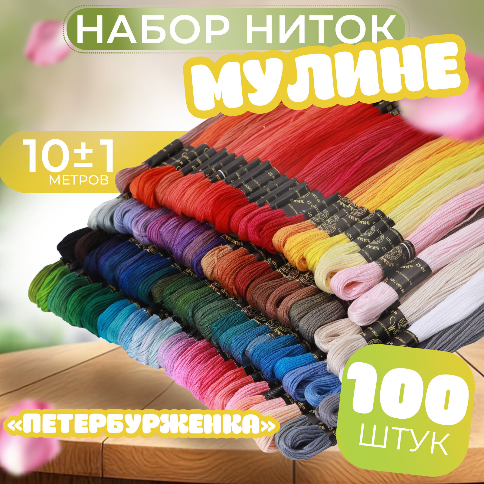 Набор ниток мулине для вышивания "Петербурженка", 10 м х 100 шт.
