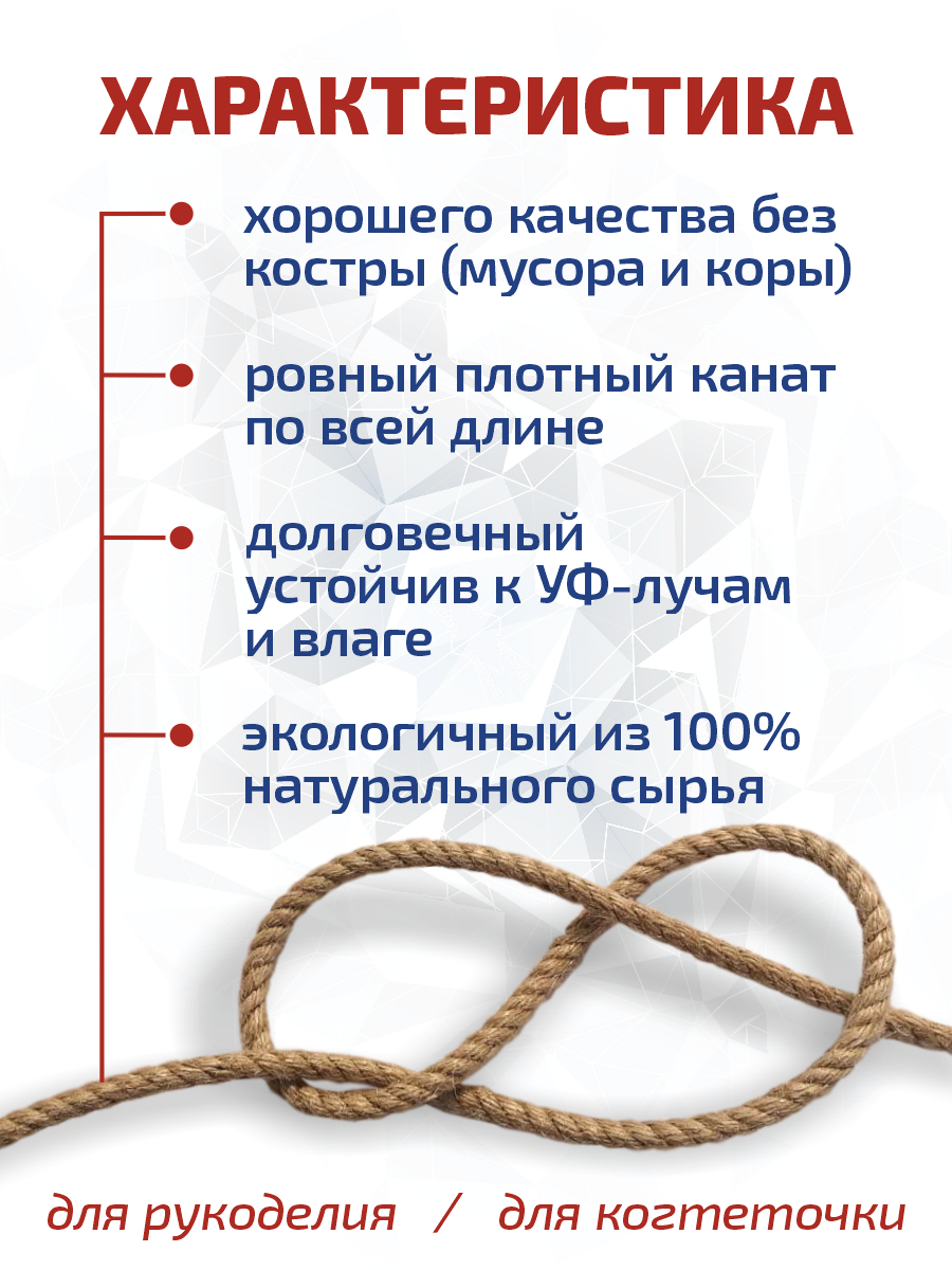 Канат джутовый (верёвка) для рукоделия и вязания, для когтеточек. Диаметр 4 мм, длина 50 метров. ГОСТ 1868. интересное: