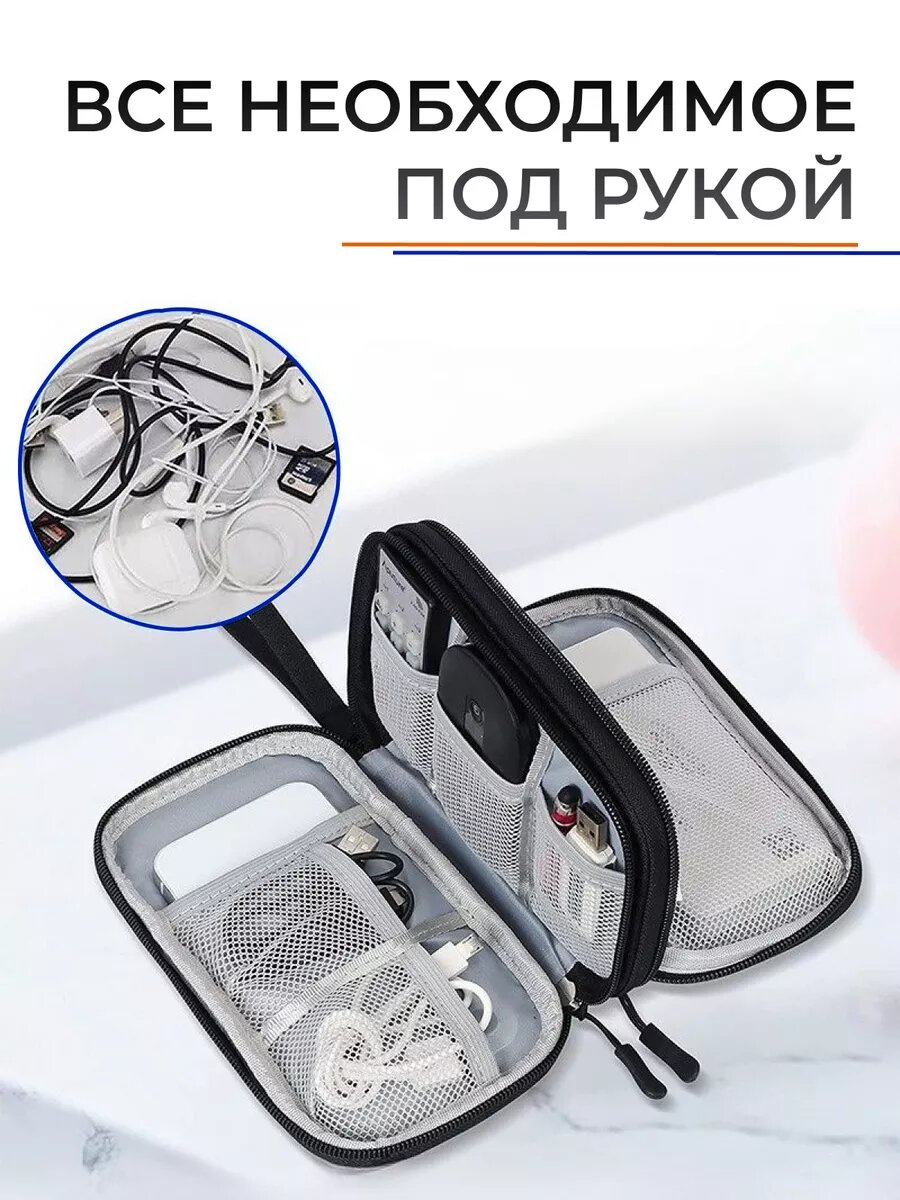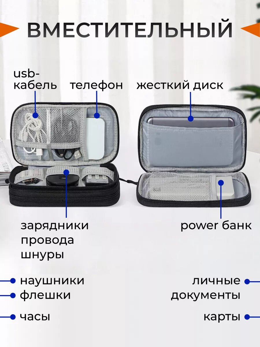 Органайзер для проводов и зарядок, сумочка для проводов и мелочей, кейс для шнуров, черный интересное: