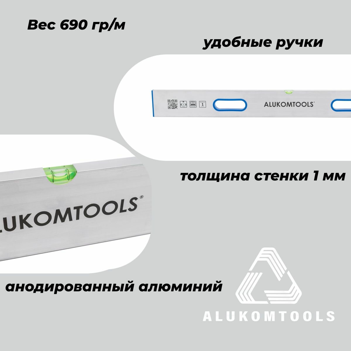ALUKOMTOOLS Строительное правило алюминиевое с ручками 1 м 221638510 интересное: