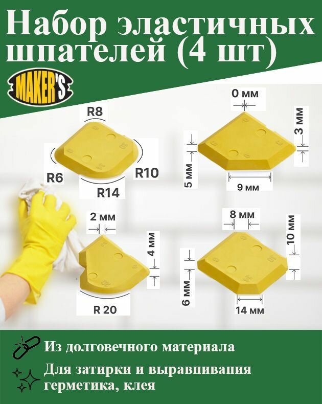 Шпатель для герметика (набор), 4 шт