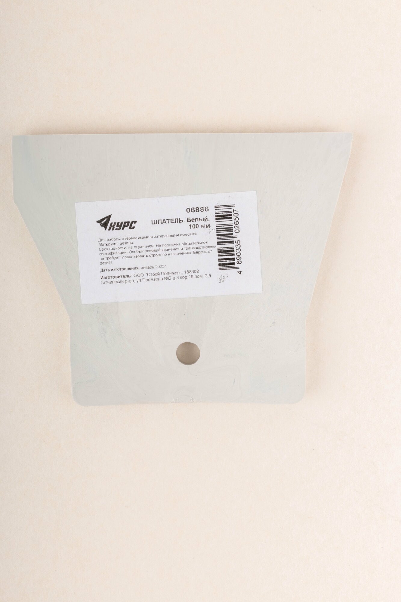 Шпатель резиновый белый 80 мм 06885
