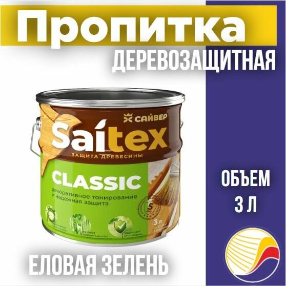Пропитка, защита для дерева SAITEX CLASSIC / Сайтекс классик (еловая зелень) 3л