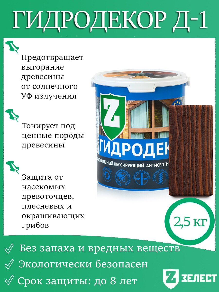 Водозащитная пропитка Зелест антисептик ГидроДекор Д-1, 2.5 кг, ореховое дерево