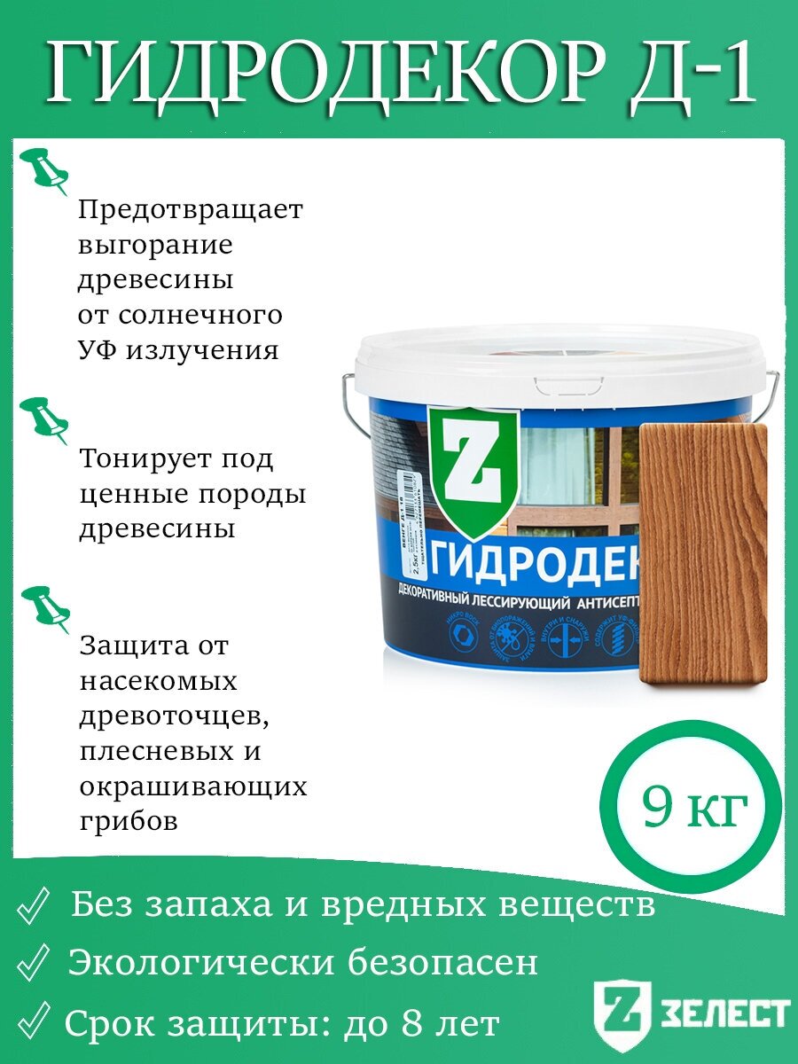 Водозащитная пропитка для дерева Зелест антисептик ГидроДекор Д-1, 9 кг, бесцветный