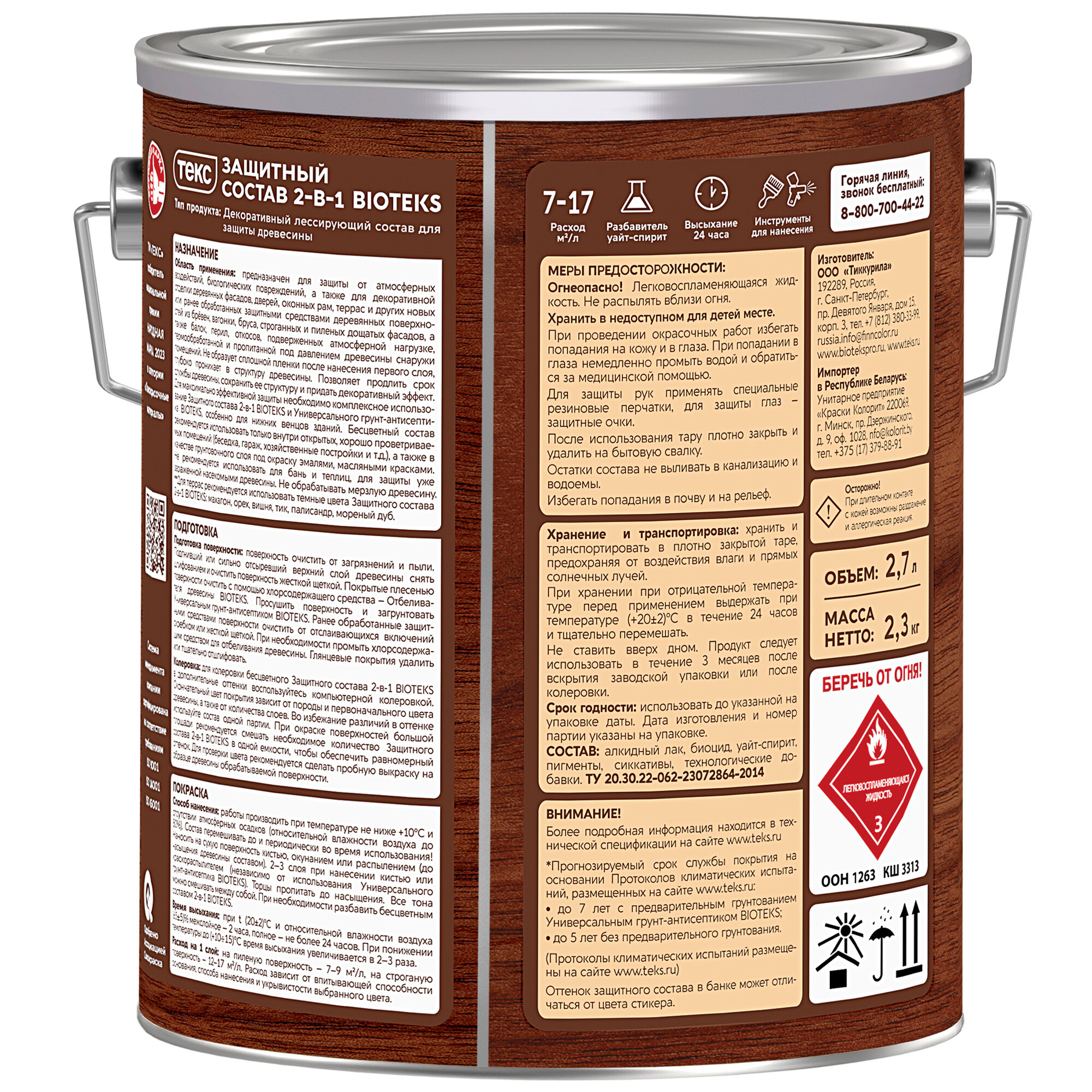 Текс BIOTEKS защитный состав 2-в-1 для наружных работ, орех (2.7 л) интересное: