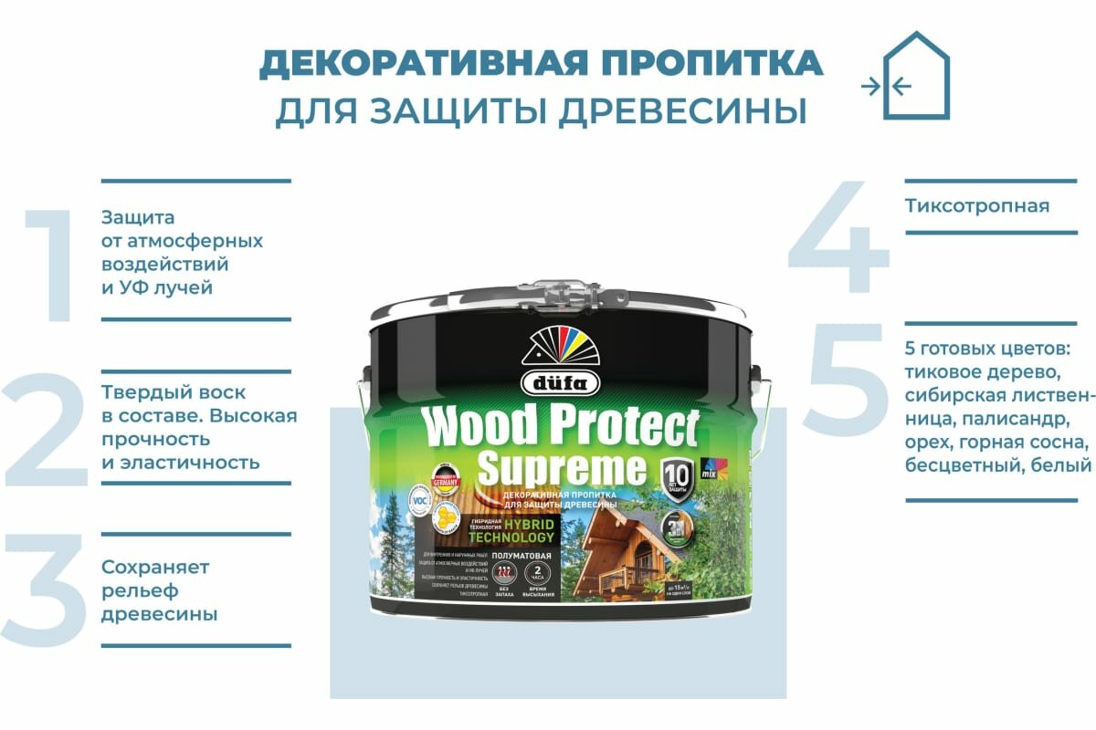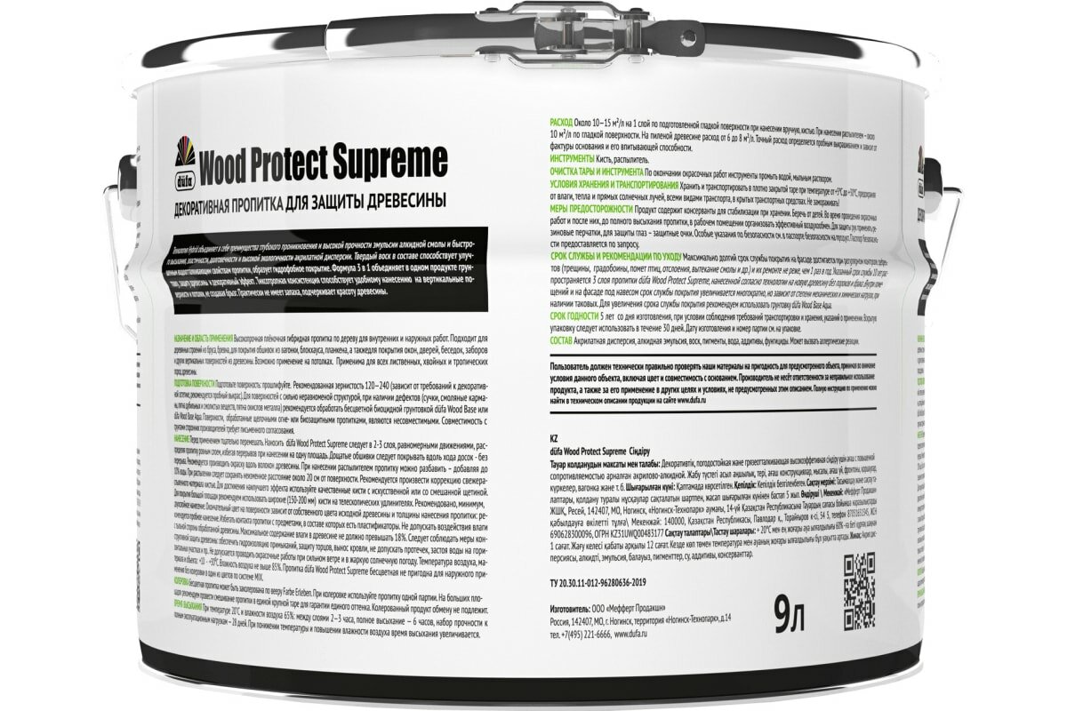 Декоративная высокопрочная пропитка по дереву Dufa Wood Protect Supreme (9л) бесцветный и под колеровку