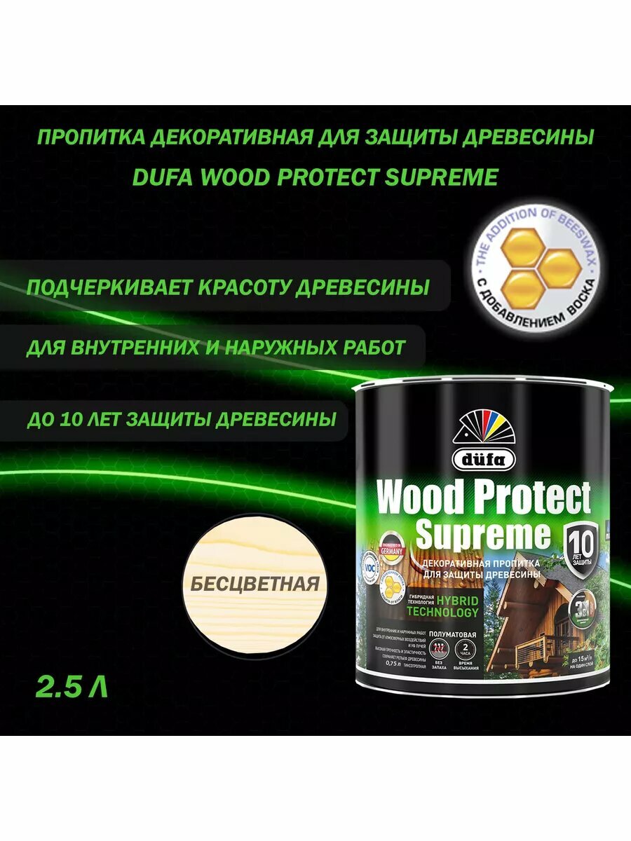 Пропитка по Дереву Dufa Wood Protect Supreme 0.75л Бесцветная, Гибридная для Внутренних и Наружных Работ / Дюфа Вуд Калор Суприм.