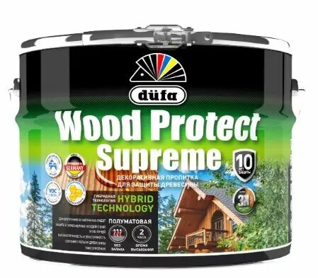 Декоративная высокопрочная пропитка по дереву Dufa Wood Protect Supreme (9л) бесцветный и под колеровку