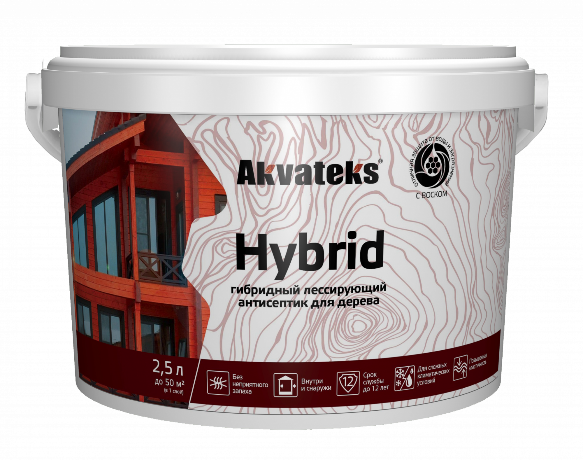 Антисептик для дерева Akvateks Hybrid, лессирующий, 2,5 л, бесцветный