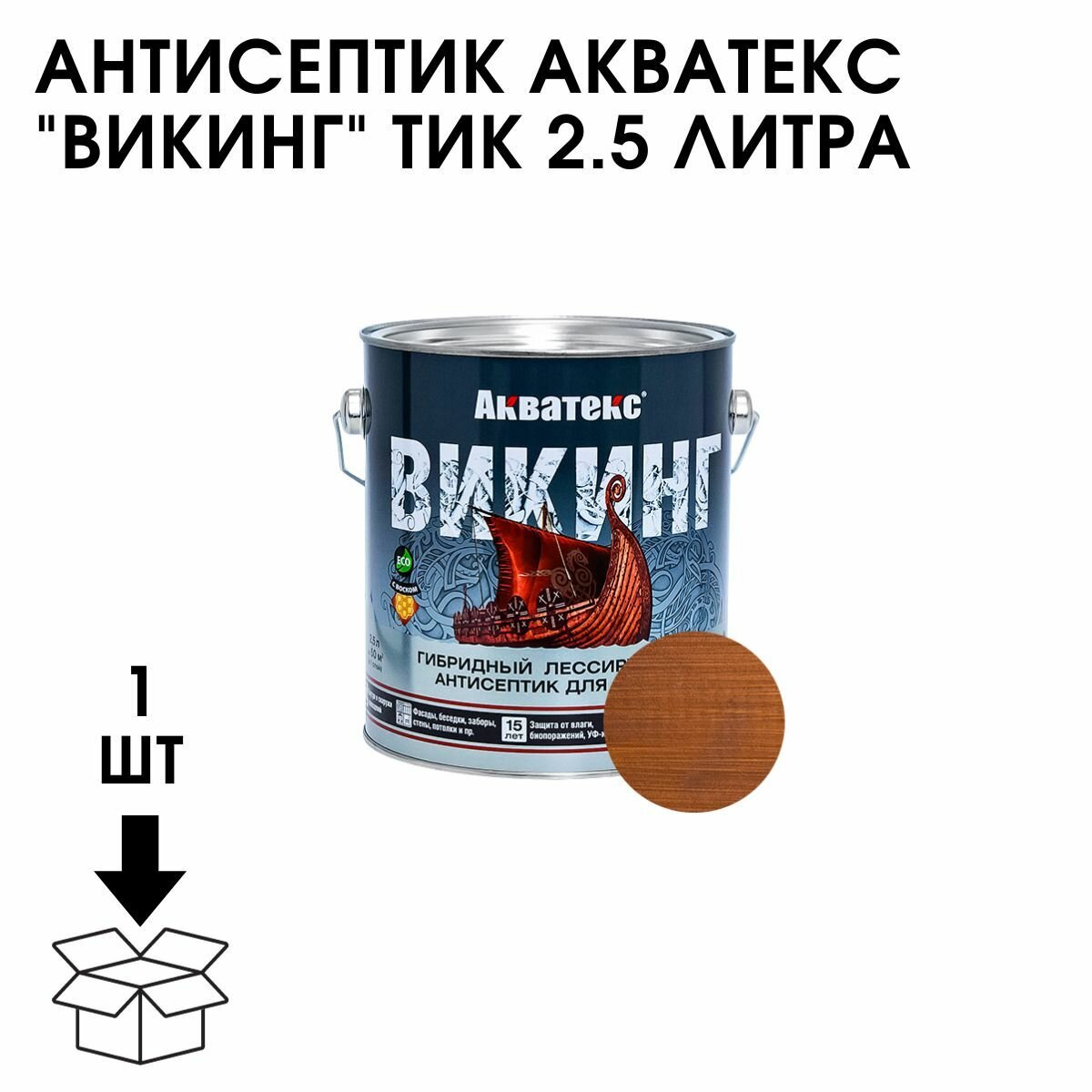 Антисептик для дерева Акватекс Викинг 65089, лессирующий, полуматовый, 2,5 л, тик