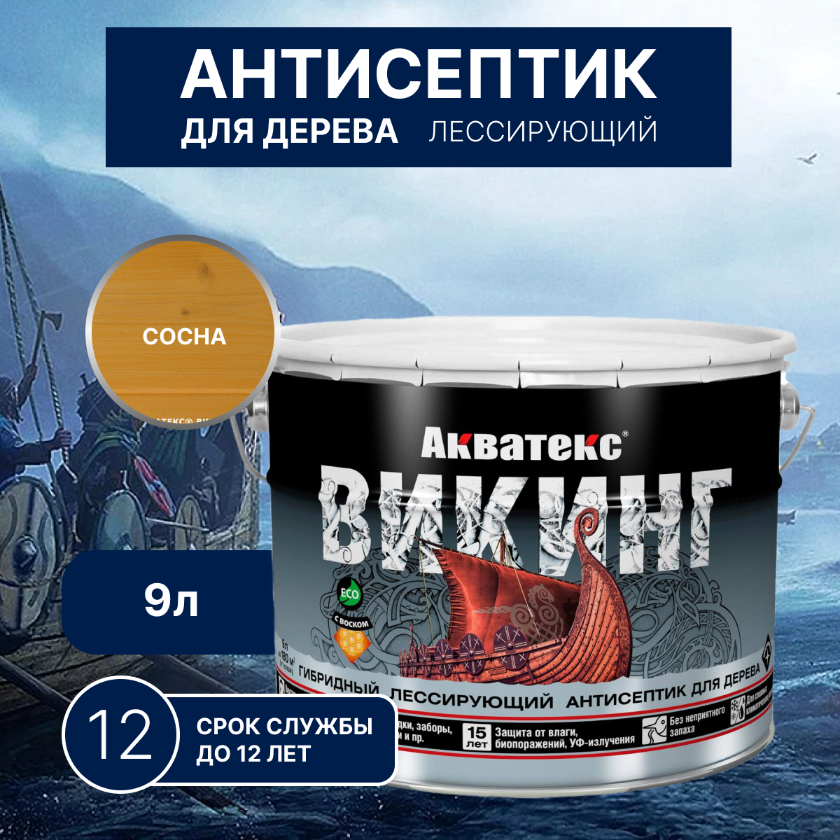 Гибридный лессирующий антисептик для дерева акватекс викинг (сосна / 9л.)