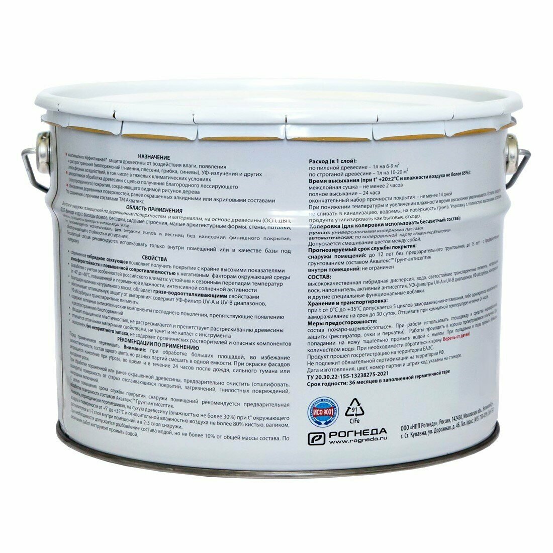 Антисептик для дерева Akvateks Hybrid, лессирующий, 9 л, белый