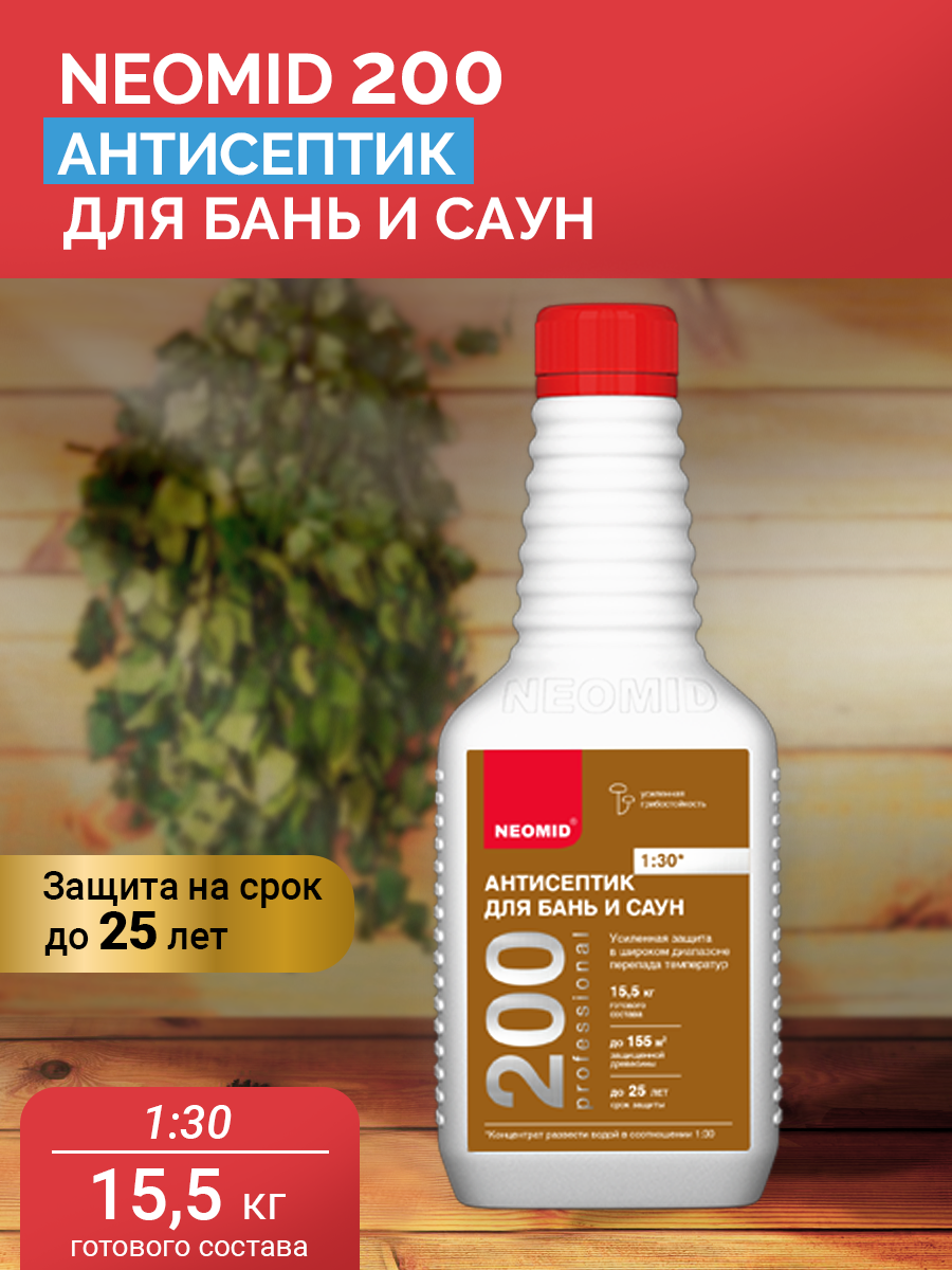 Антисептик-Концентрат для Бань и Саун Neomid 200 0.5л (1:30) для Сверхвысокой Защиты Древесины от Гниения / Неомид 200*