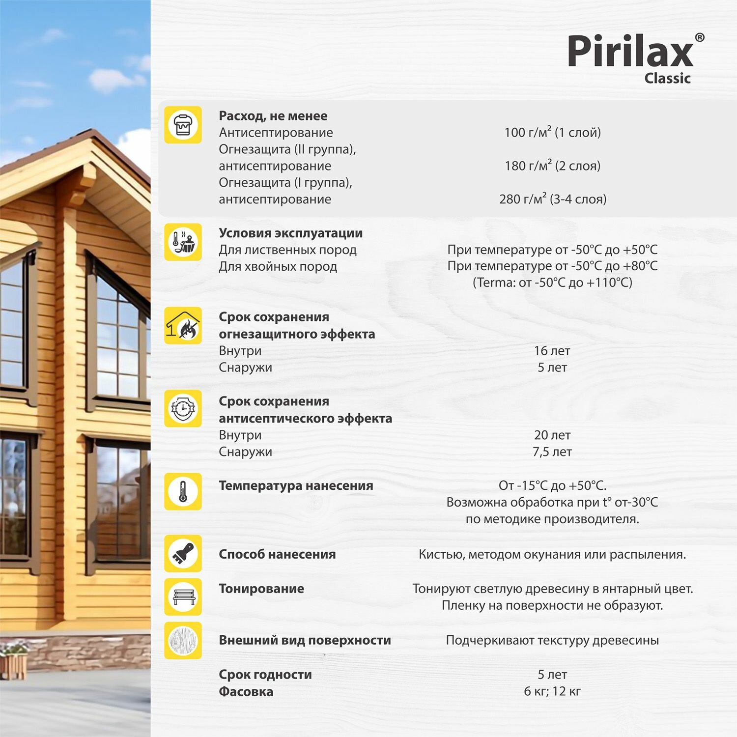 Pirilax Classic 6кг, Пирилакс, огнезащита и антисептик для древесины в нормальных условиях до 20 лет, огнезащитная пропитка