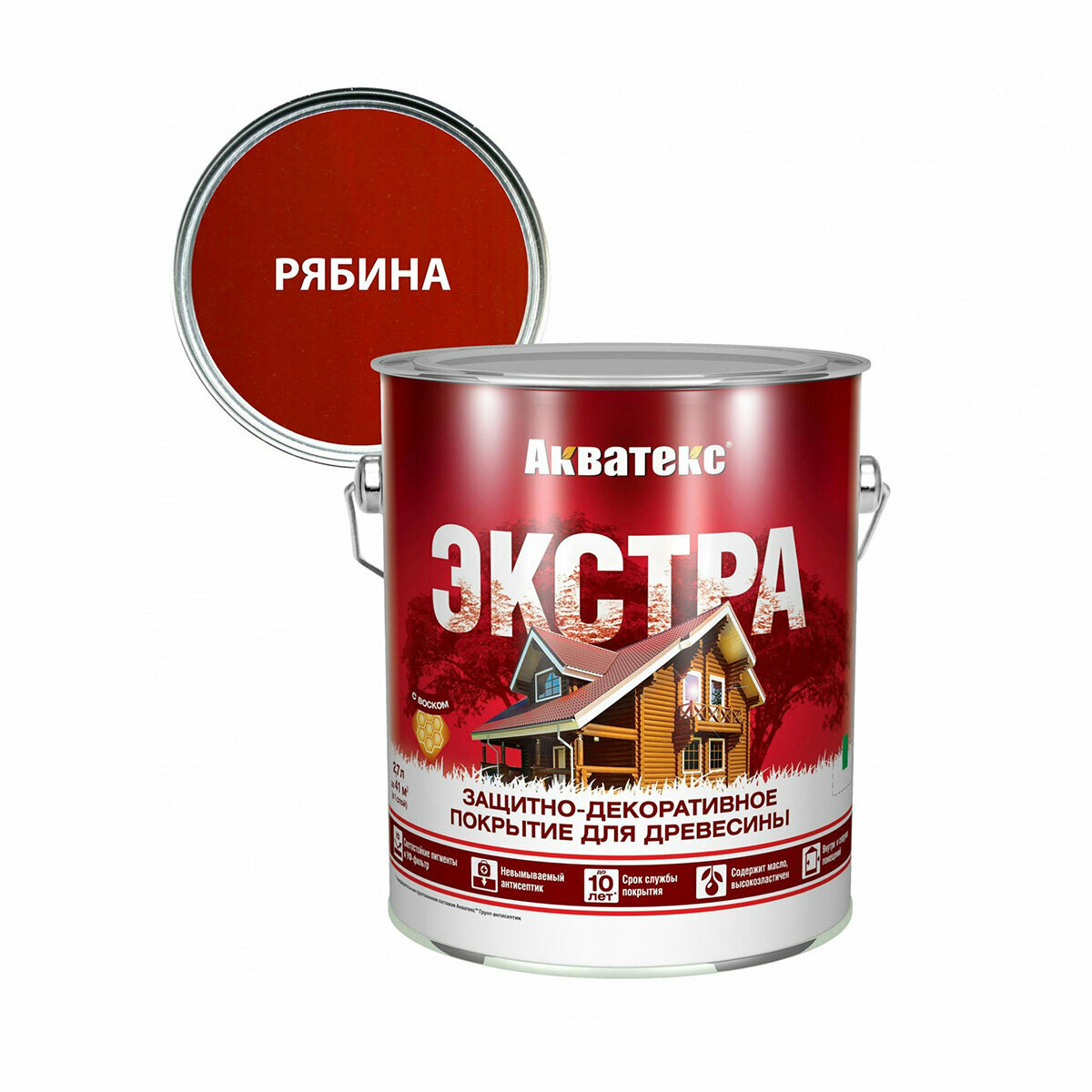 Акватекс Акватекс-Экстра защитно-декоративное покрытие для древесины алкидное полуглянцевое рябина 2,7л