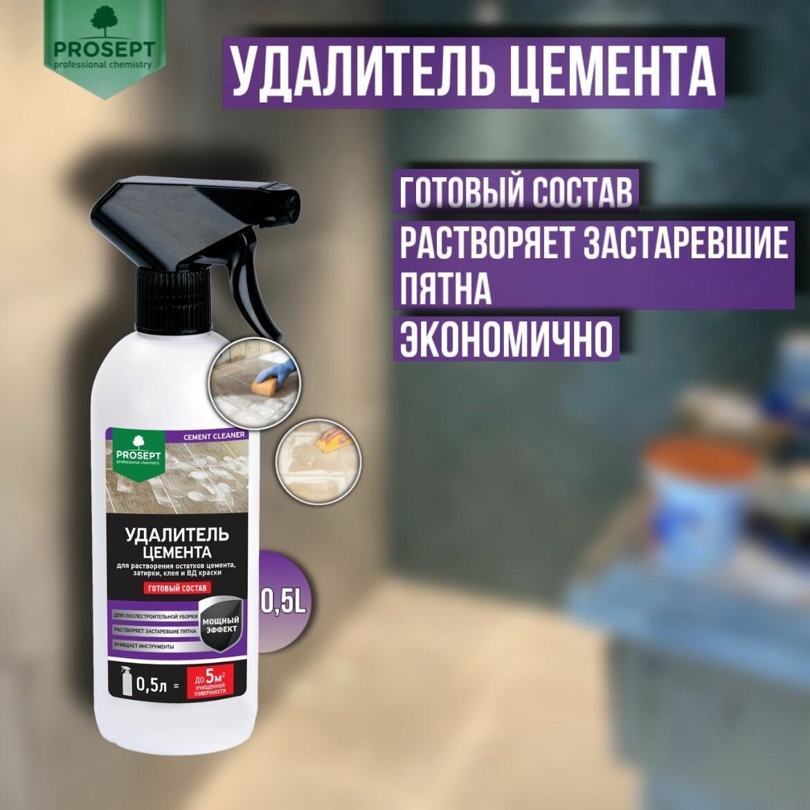 Купить Удалитель цемента prosept cement cleaner для каф. кирпич. стекл. металл. 0,5л