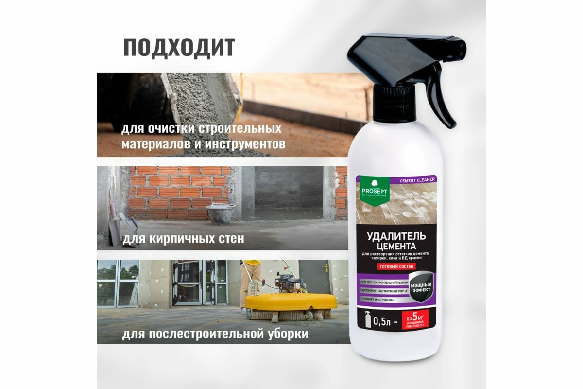 Удалитель цемента prosept cement cleaner для каф. кирпич. стекл. металл. 0,5л интересное: