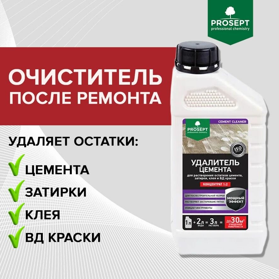 Ниже Вы можете прочитать отзывы на Удалитель цемента prosept cement cleaner для каф. кирпич. стекл. металл. 0,5л, ознакомится с подробными характеристиками, посмотреть интересные обзоры и фотографии на Удалитель цемента prosept cement cleaner для каф. кирпич. стекл. металл. 0,5л.