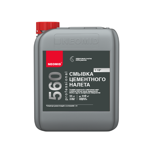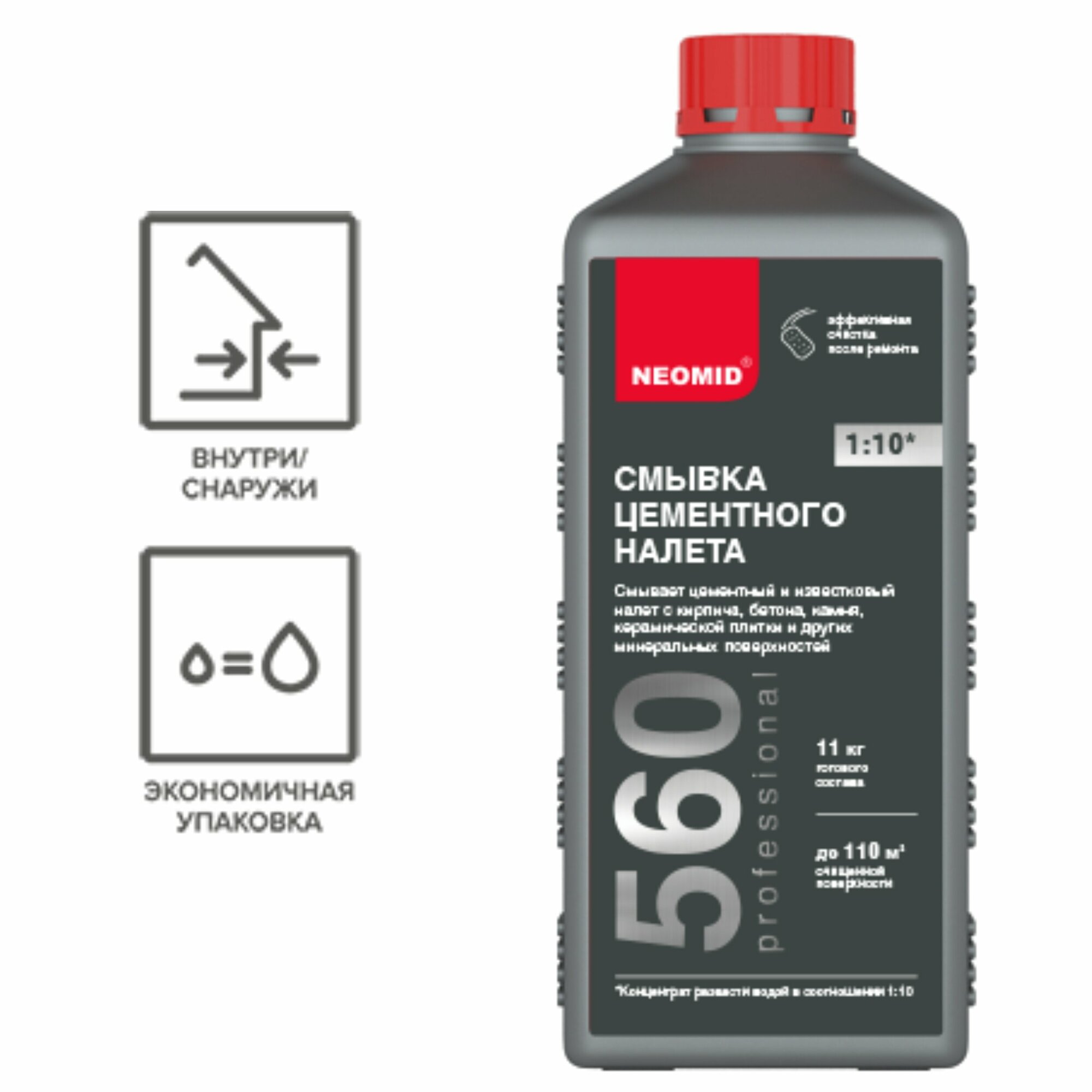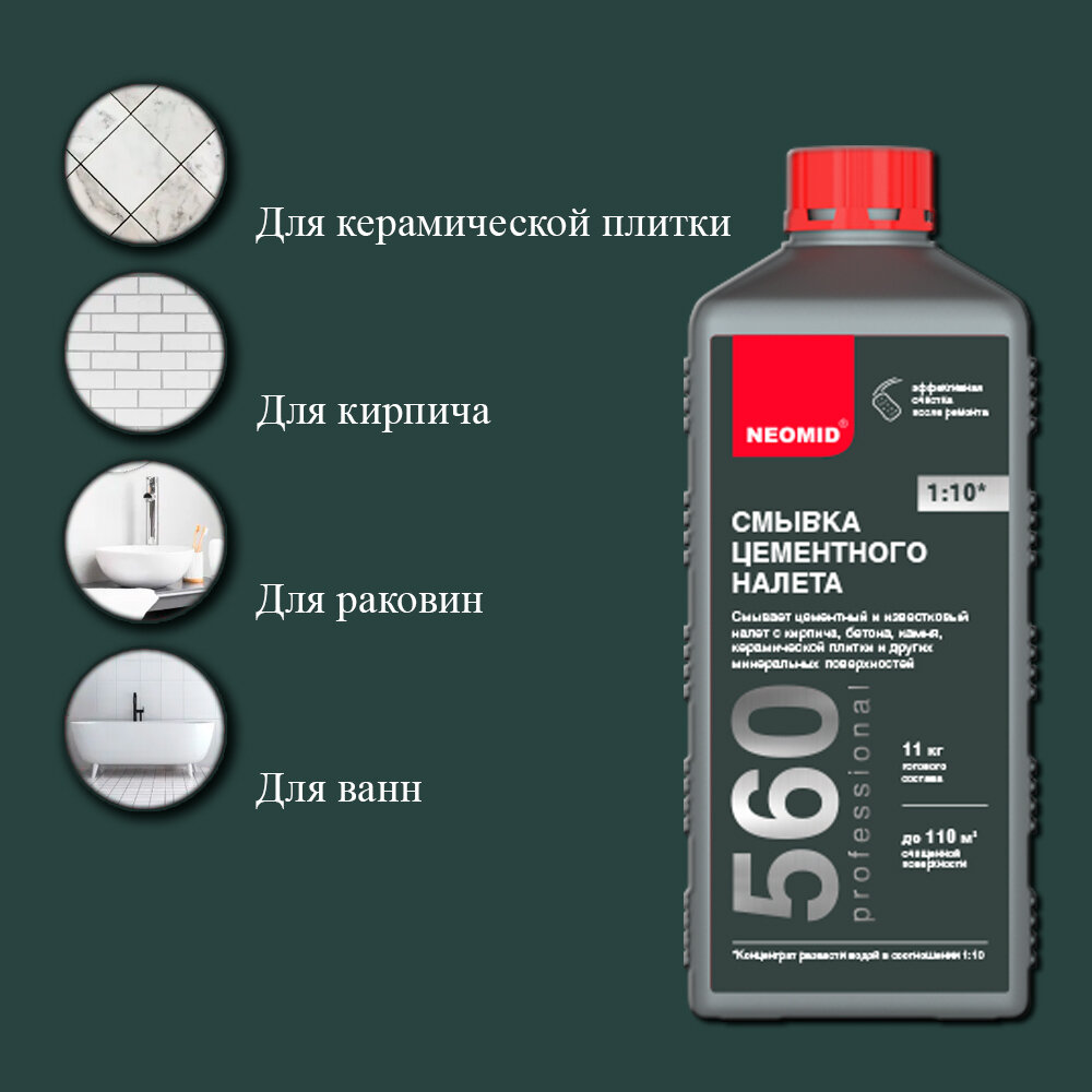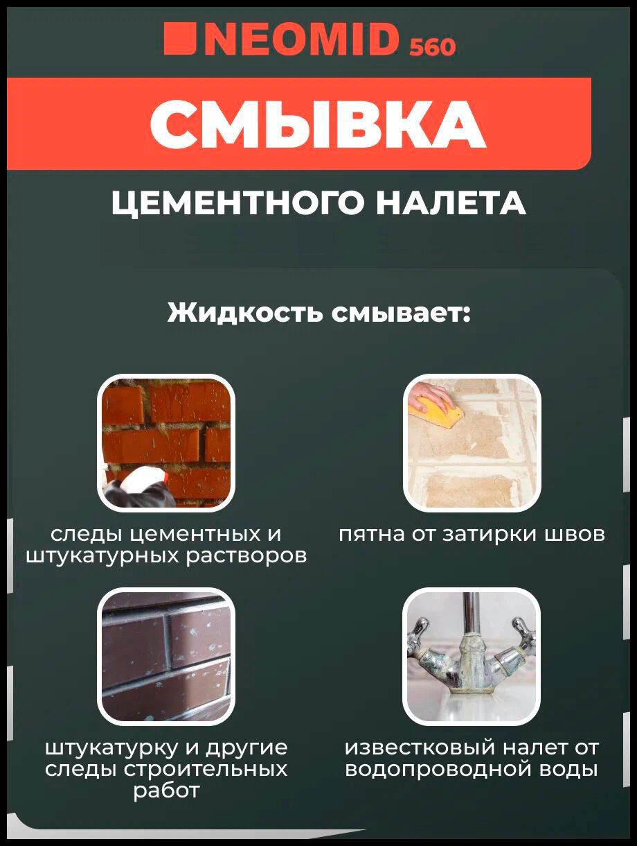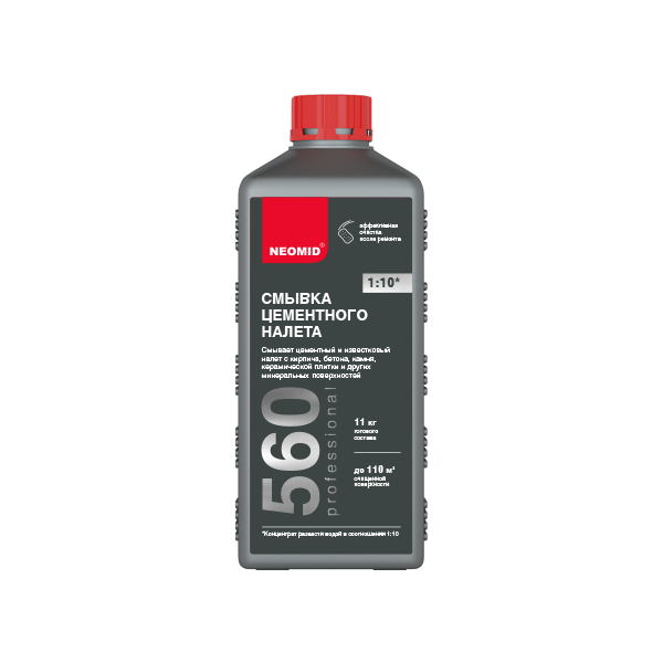 Neomid 560 смывка цементного налета (1 л) концентрат 1:10 / Удаление цементных, известковых и гипсовых загрязнений