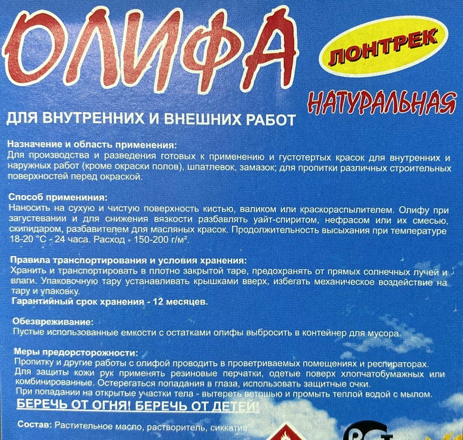 Олифа натуральная , ГОСТ Р 51692-2000, 3 л, Лонтрек интересное: