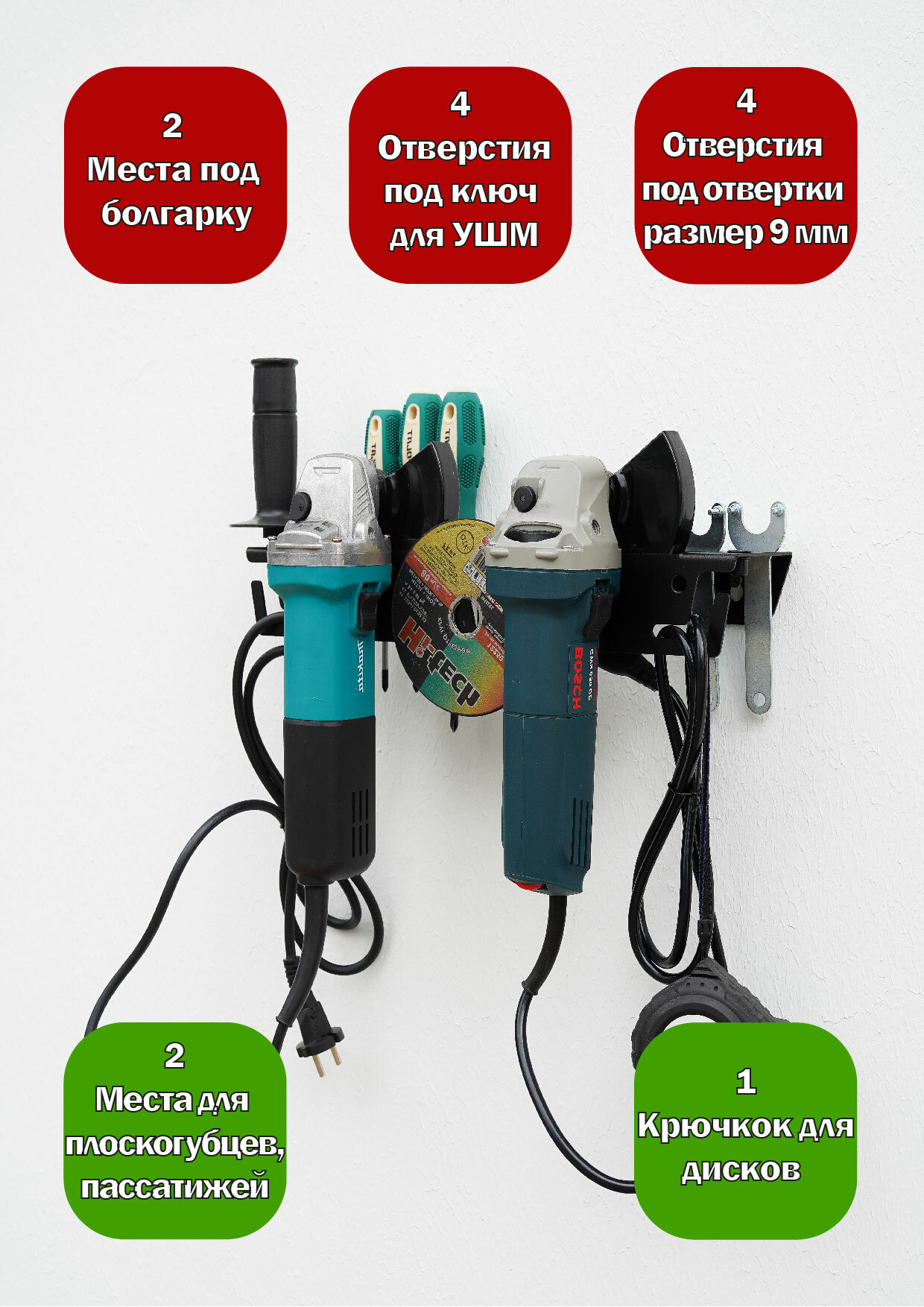 Держатель органайзер металлический для болгарки и инструментов ElectricLight.