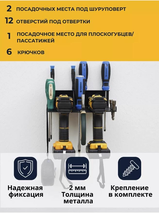 Купить Держатель органайзер металлический для 2-х шуруповертов и инструментов ElectricLight